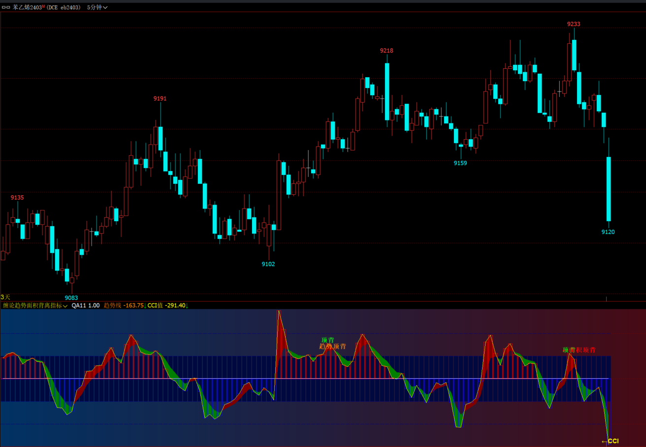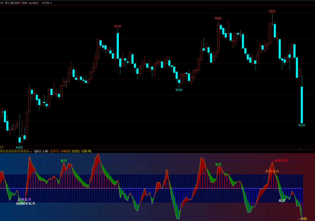 (文华财经期货CCI多空顶底背离趋势背离面积背离指标)