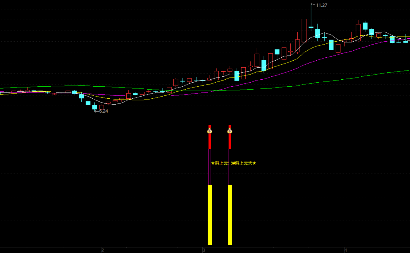 (【斜上云天】通达信角度斜上云天副图选股预警指标,源码分享)