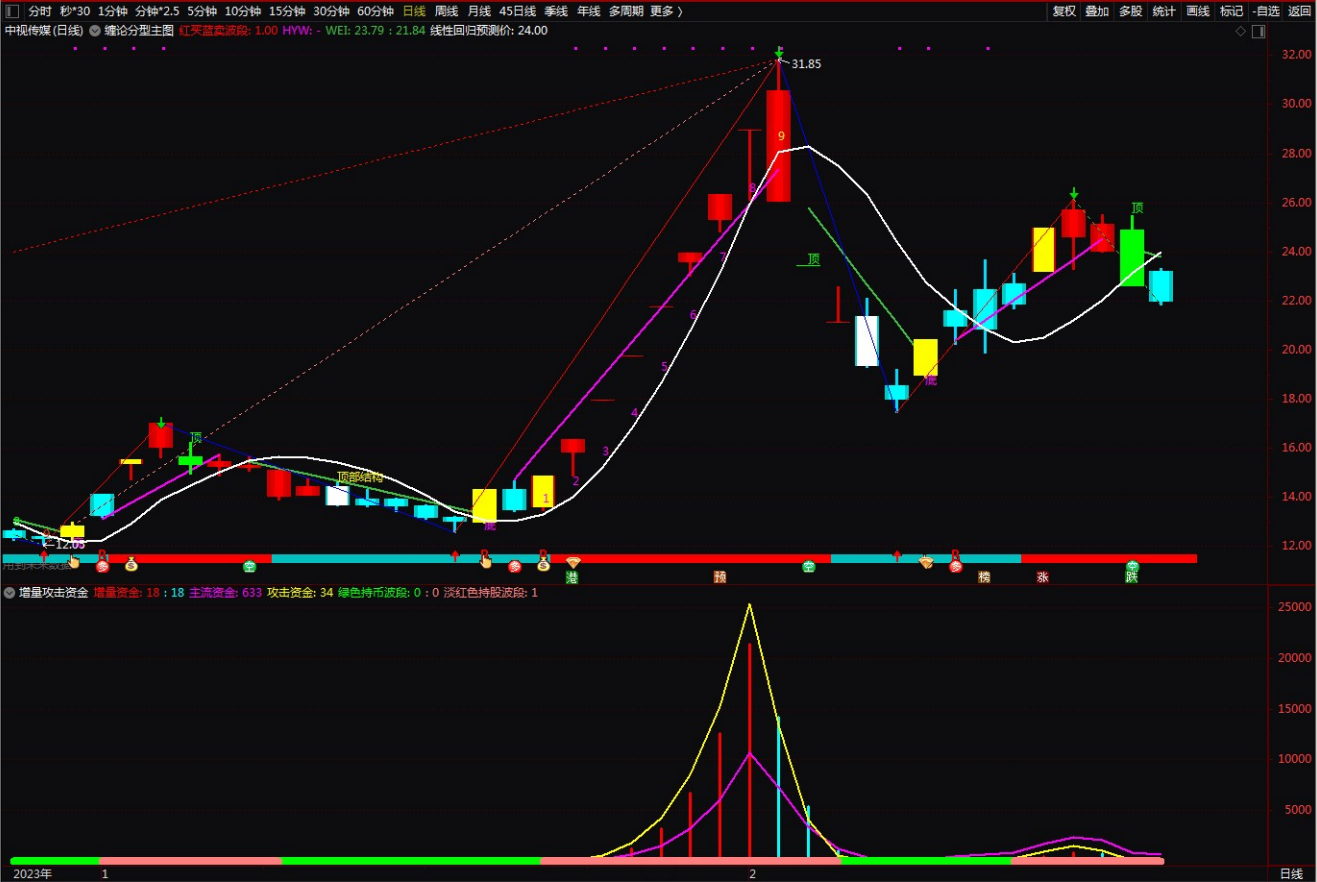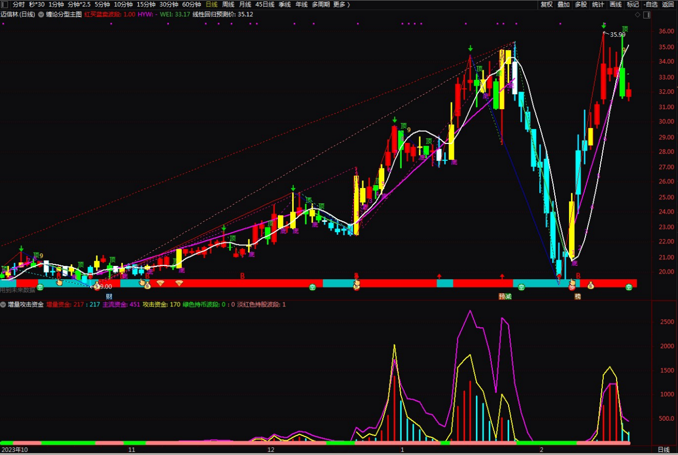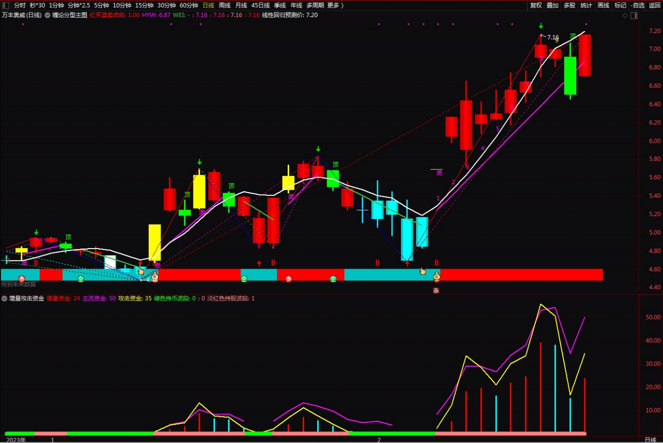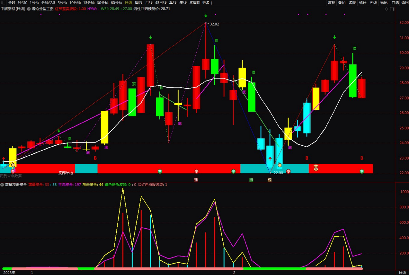 增量攻击资金副图,分增量资金,主流资金,攻击资金,有波段操作线。