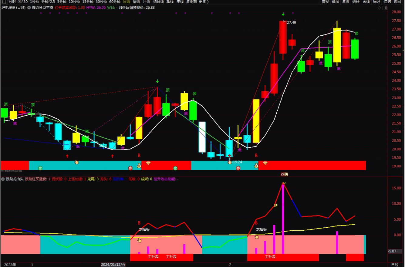 (波段龙抬头副图和选股公式,对抓牛股有很好的参考作用,可用于股票,可转债,期货等做T+0。)