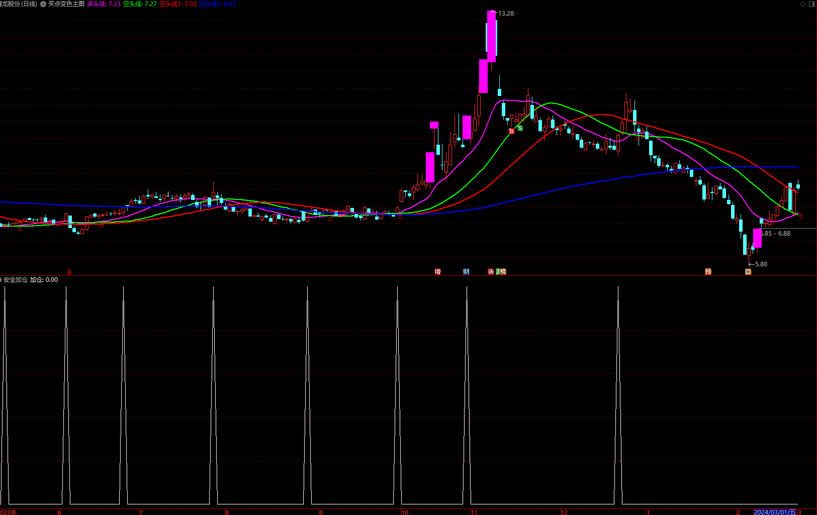 (金典通达信安全加仓选股副图指标源码!)