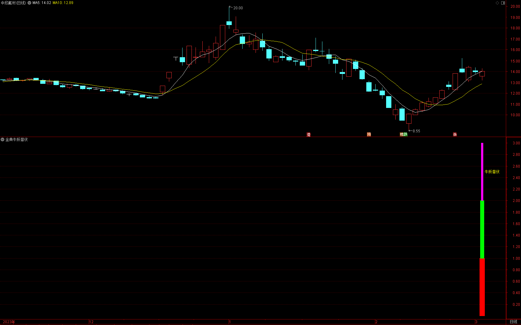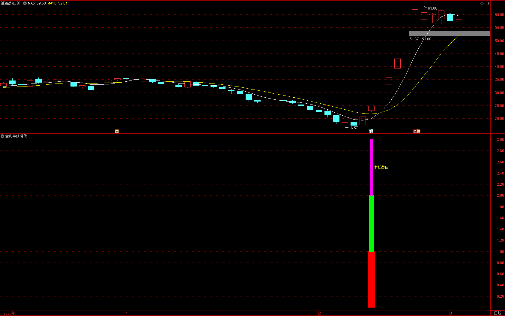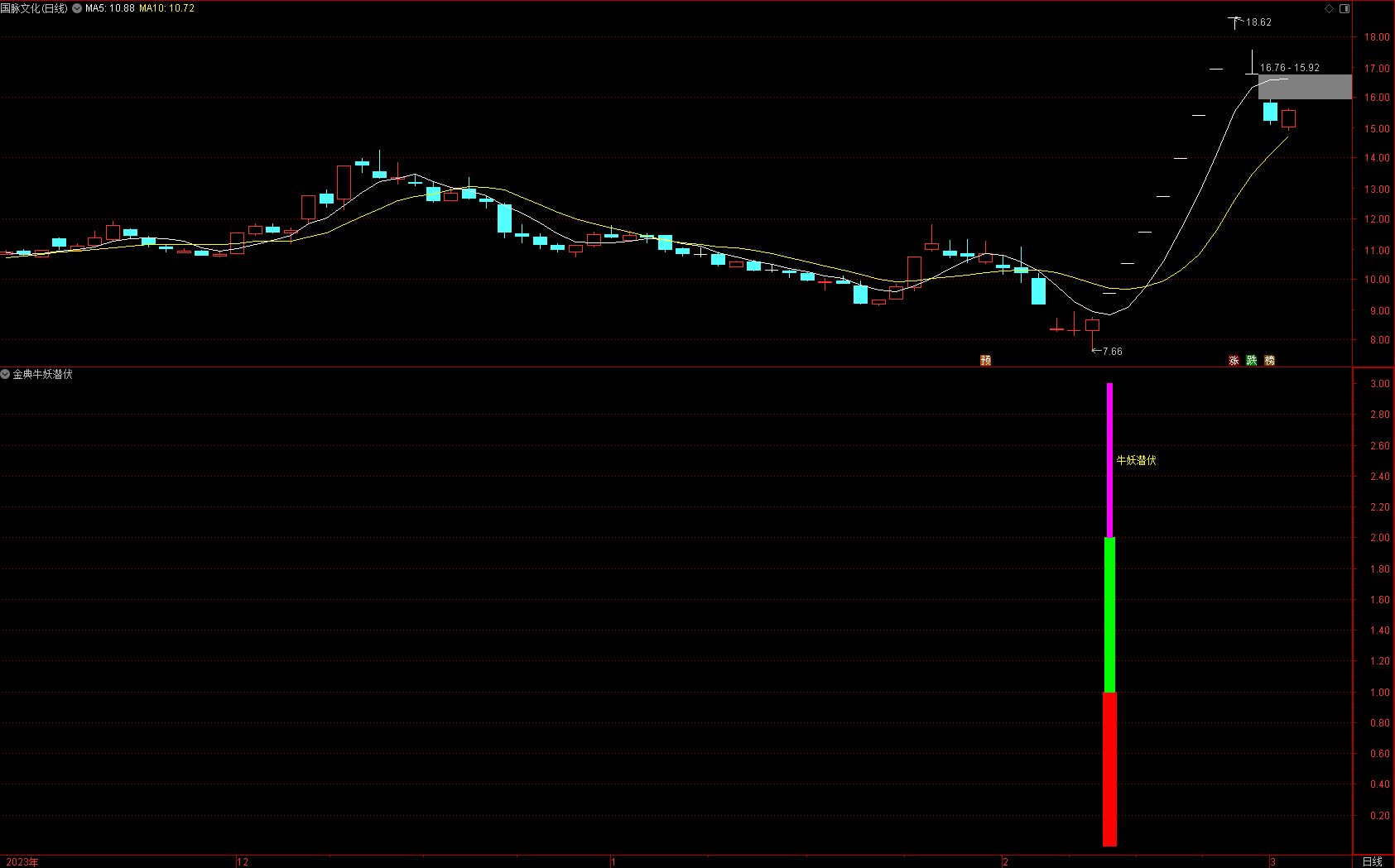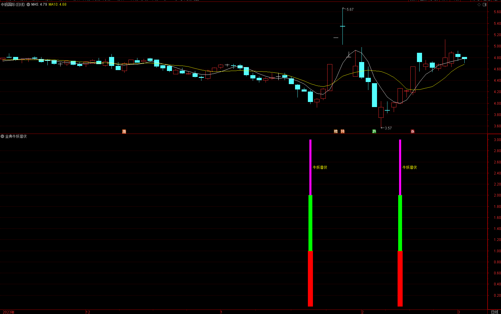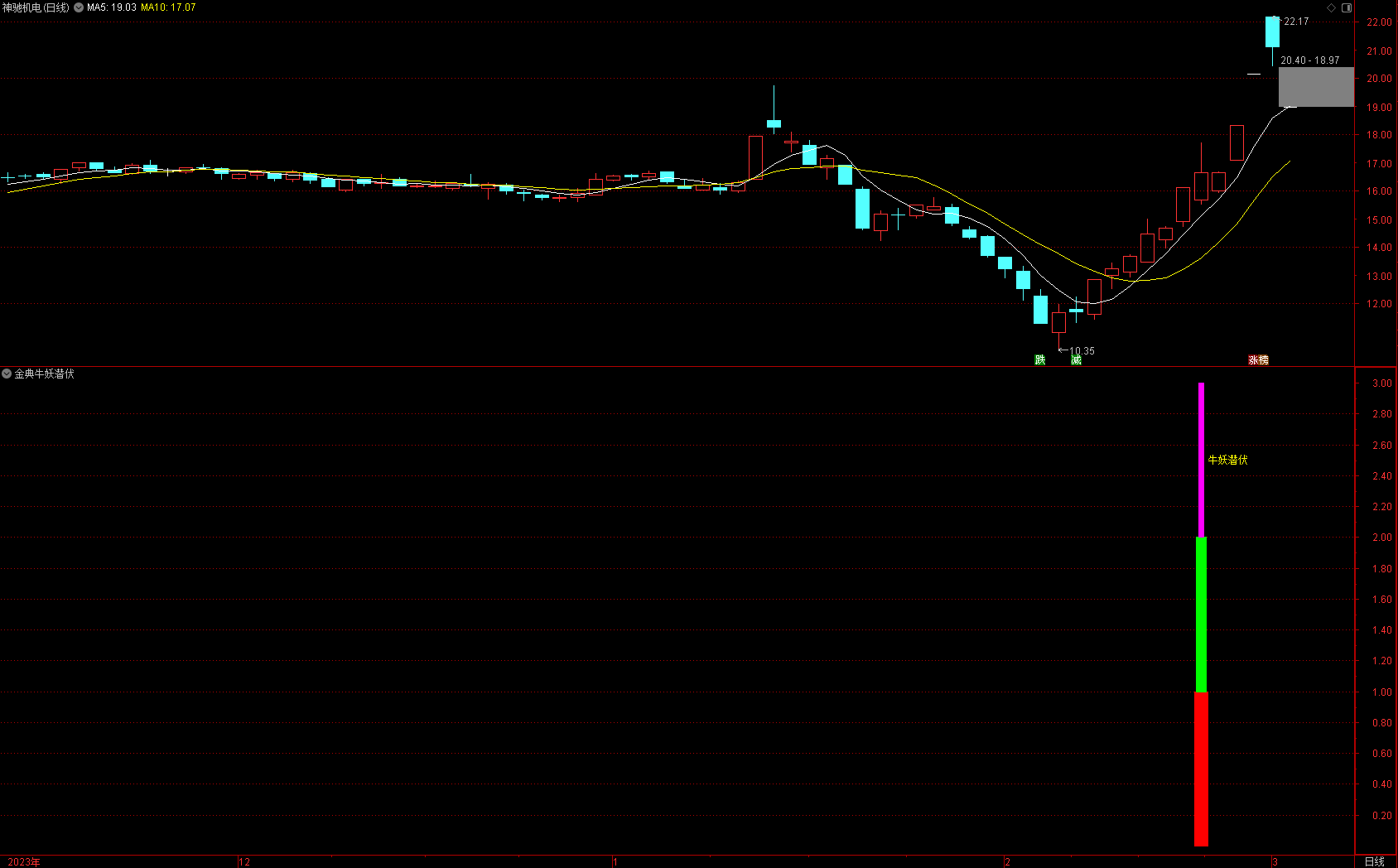 (金典通达信牛妖潜伏选股副图指标,股市长虹!!!)