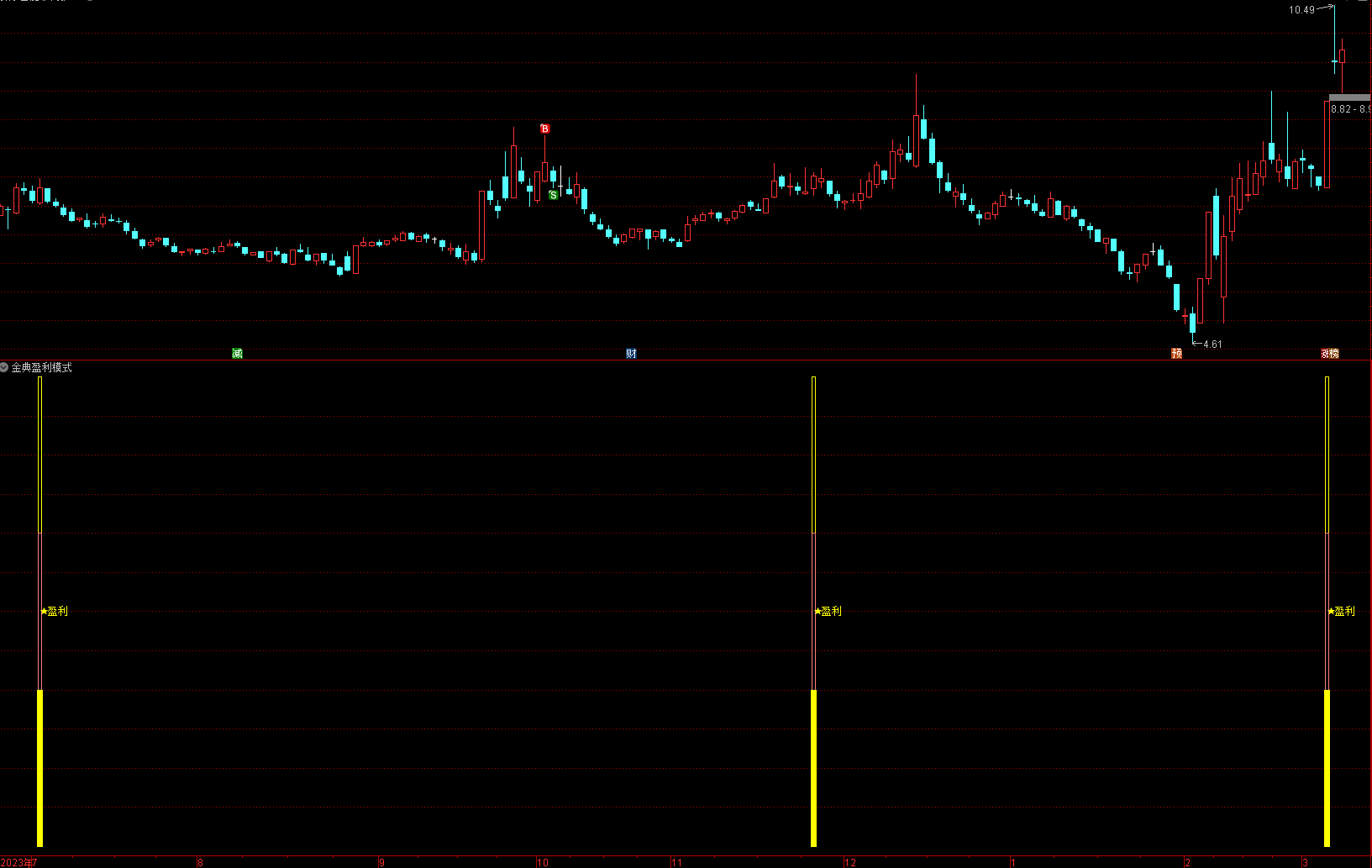 (金典通达信金典盈利模式选股副图指标源码,股市长虹!!!)