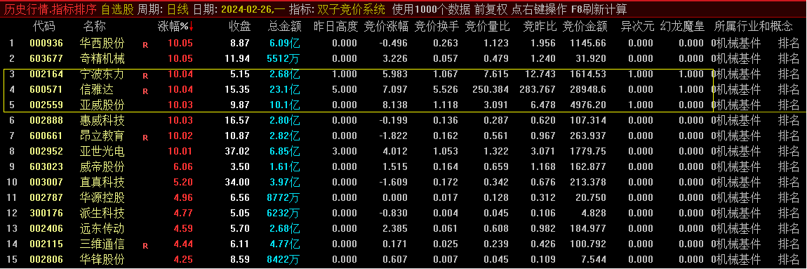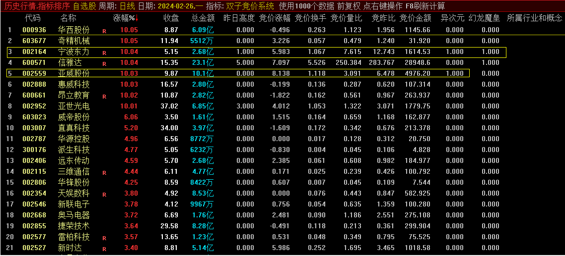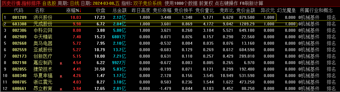 (双子竞价系统 排序指标,只干龙头 历史竞价数据可回看)