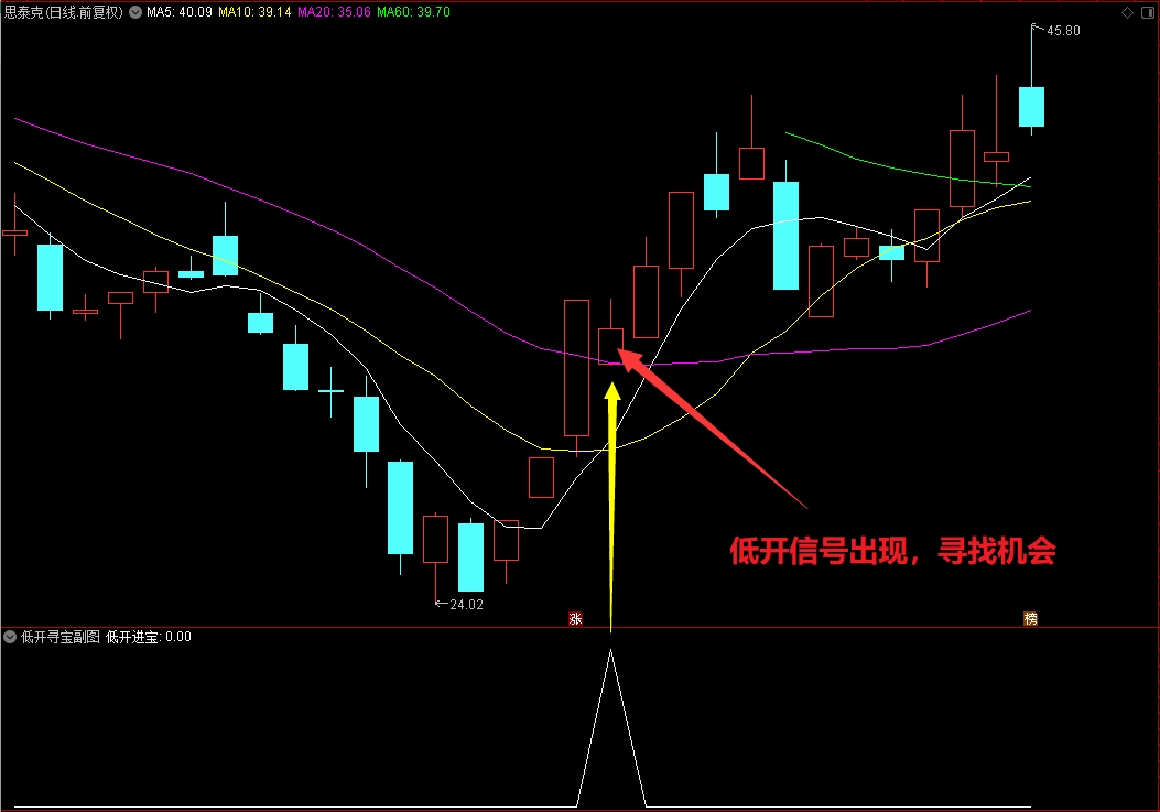 【低开寻宝】通达信低开寻宝副图选股指标,高是风险,低开才是机会!源码分享