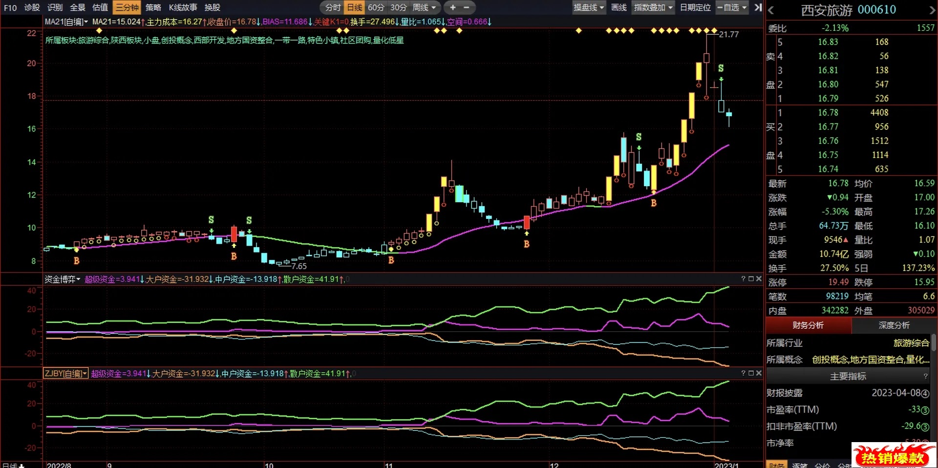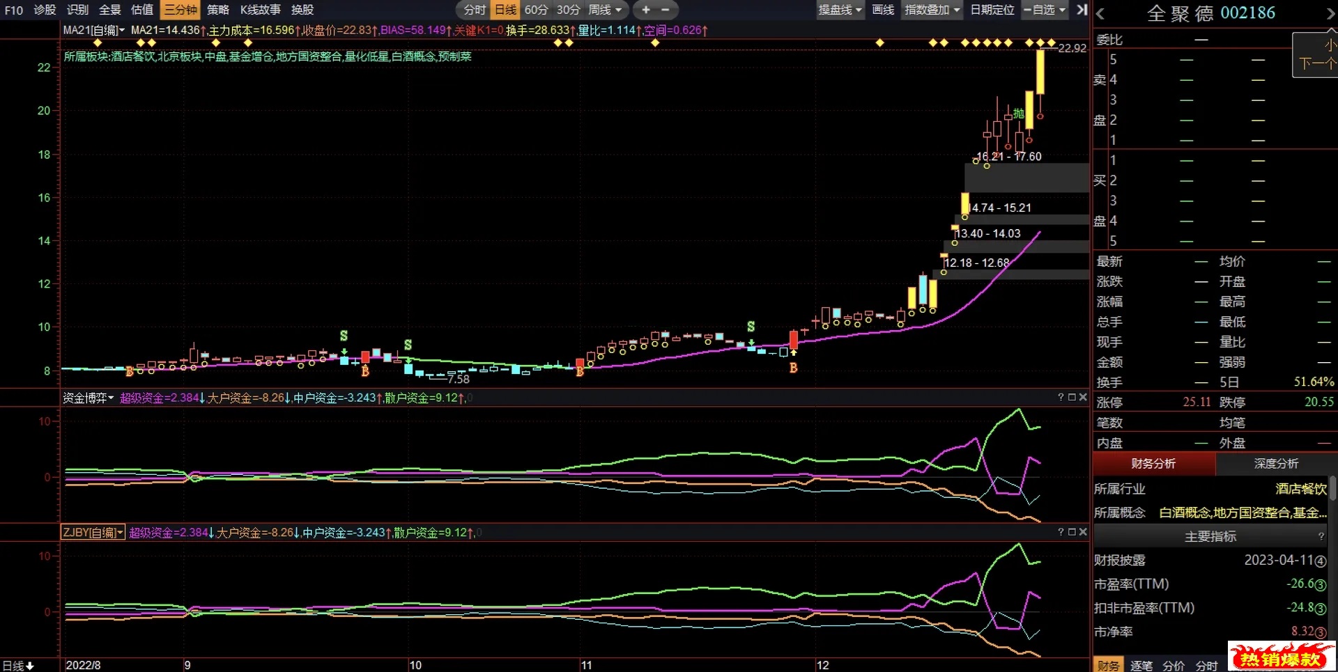 (【益盟操盘手】资金博弈副图指标,需要L2数据支持!益盟公式分享)