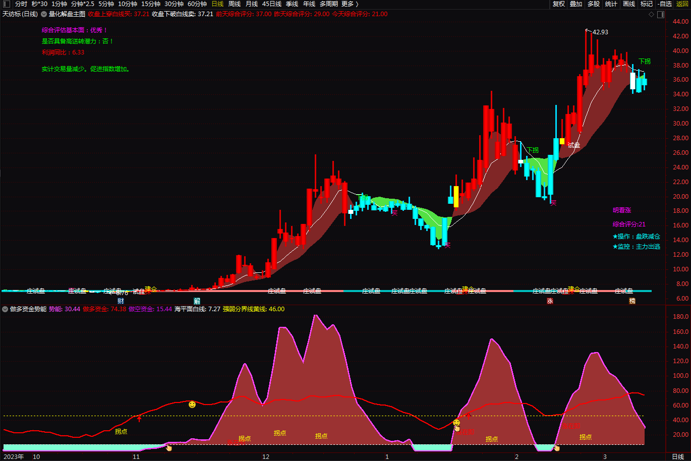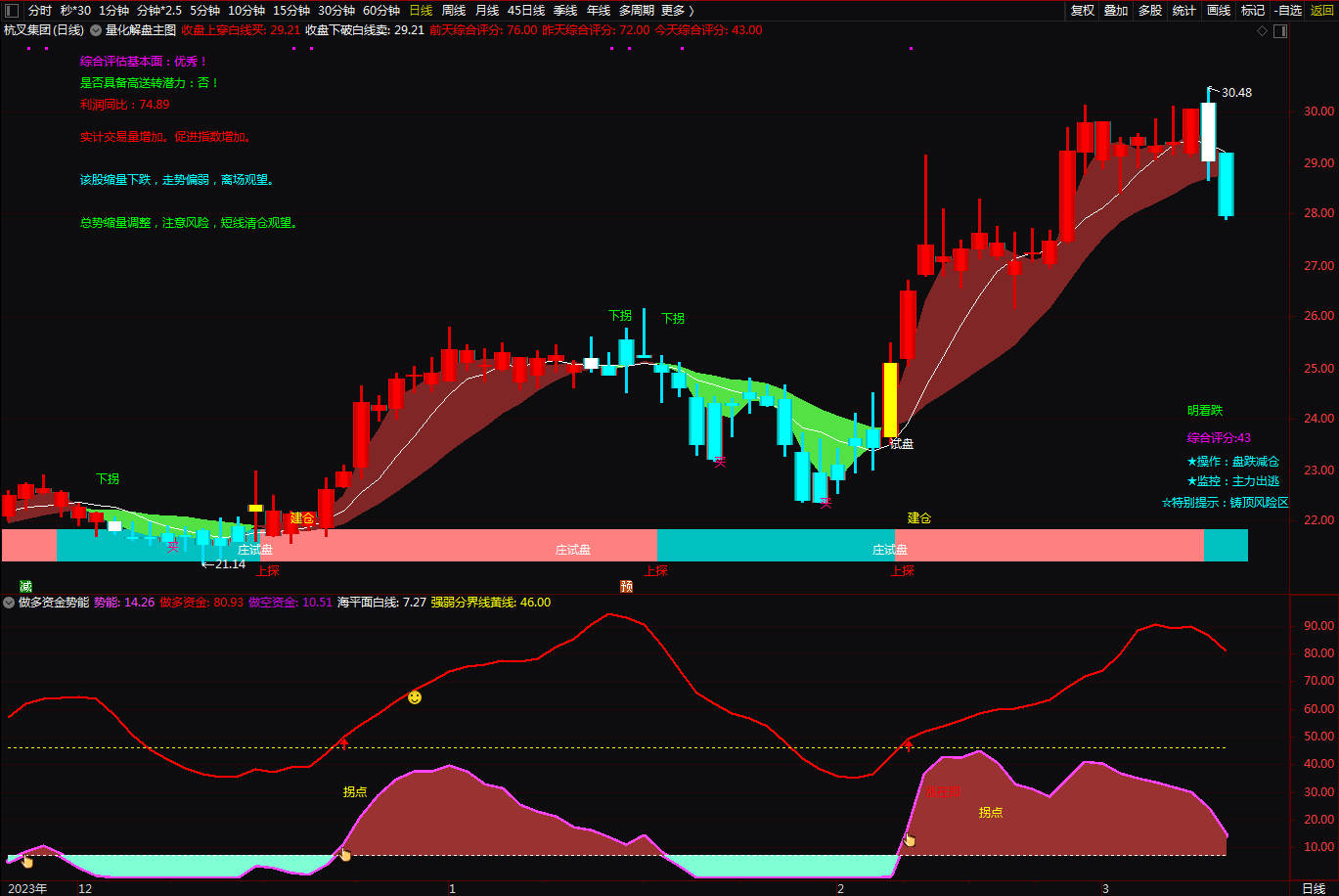 通达信〖顶底拐点预警〗结合短期跌幅和形态识别寻找低吸高抛时机