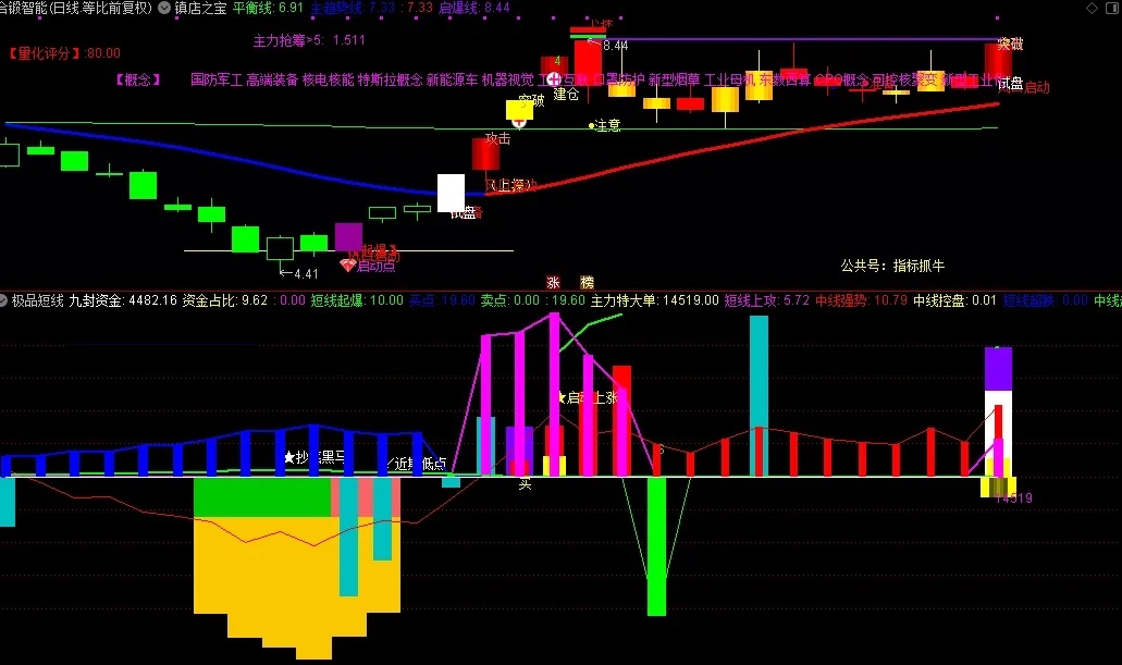 极品短线指标是由 黄金短线极品、主力状态、九封资金和九封资金占比、主力特大单、主升浪等精品指标组合而成,避免了单个指标的缺漏和不足!
