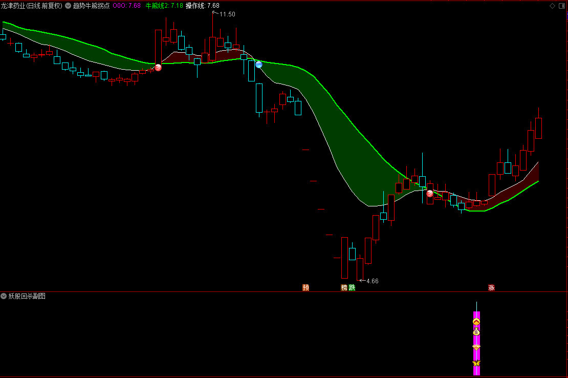 信号数量较少,经过股价与成交量的运行规律,并结合涨停板的数量及股价调整幅度,精准预测妖股回杀企稳后的一个预警起涨点。