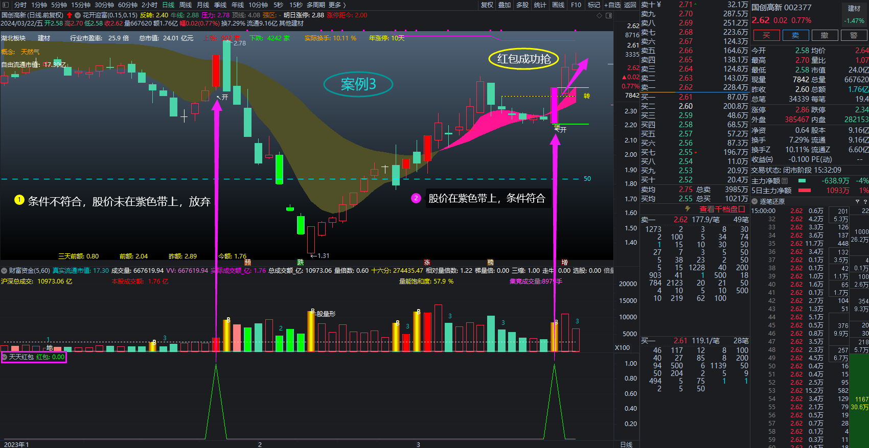 天天抢红包是超短小战法,出信号且在紫色带上当天尾盘买入,无紫色带如果第二天出紫色带可逢低介入!无加密,无未来,信号不漂移!有相关图解请认真研读。本指标包含幅图+选股。