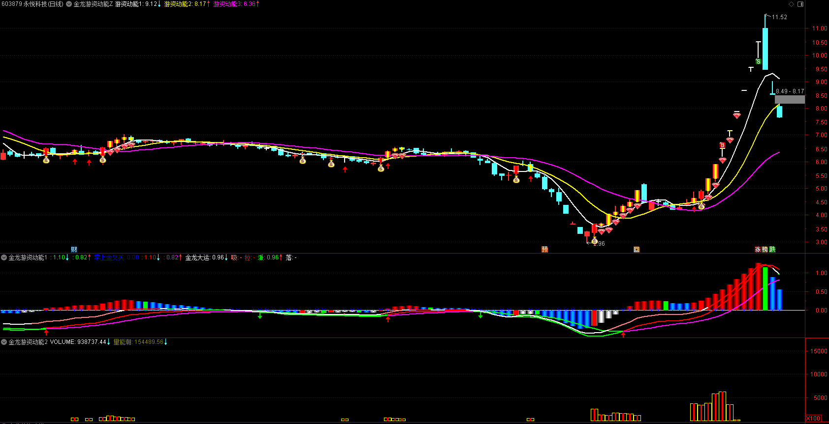 通达信【金龙游资动能】套装指标,分为1个主图+2个副图+1个选股;