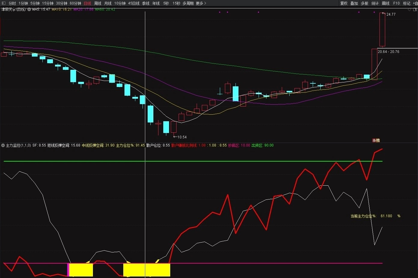 主力自己各种操盘阶段,可以清楚地分辨出来,帮助我们及时发现主升浪,跟着主力吃肉!含选股公式