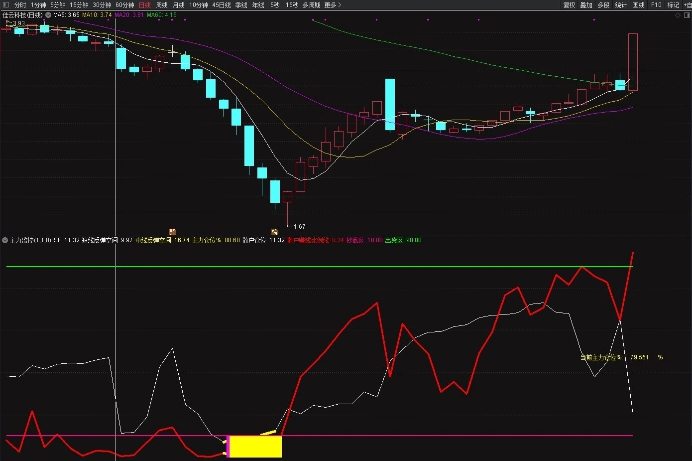 精华版:分时主力吸筹:增加了买入点提示,效果不错。手机电脑都可用。