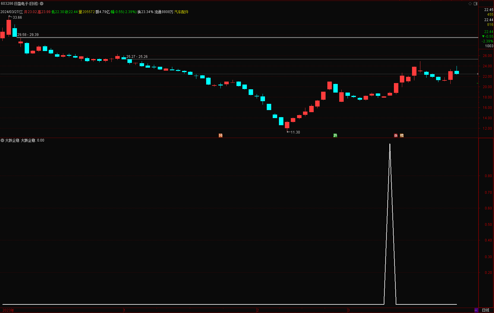(金典通达信大跌企稳选股副图指标,一个抓小反弹的指标)