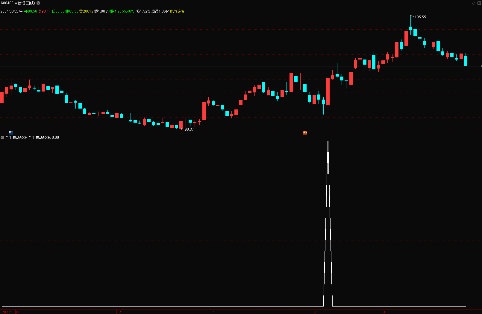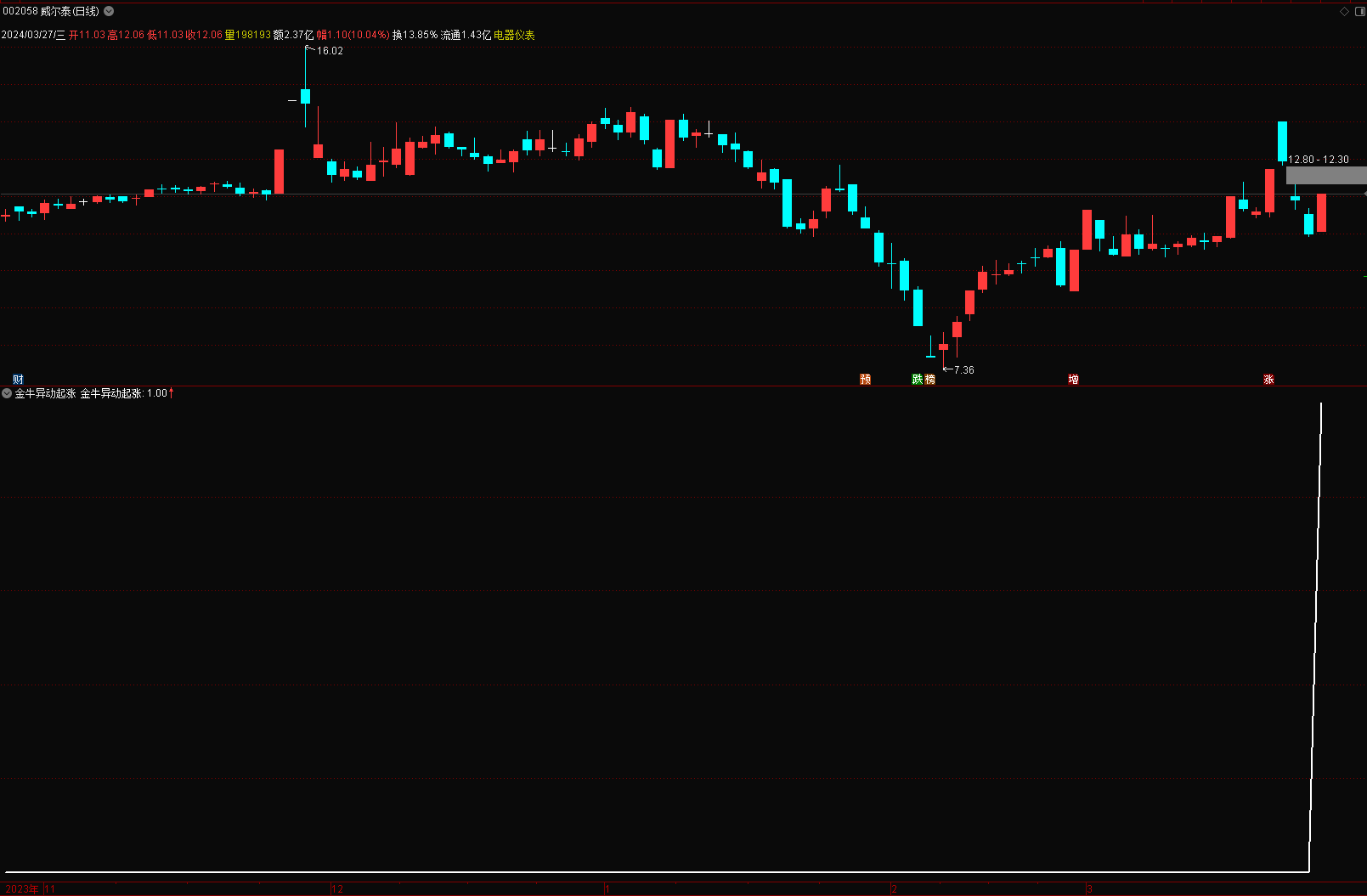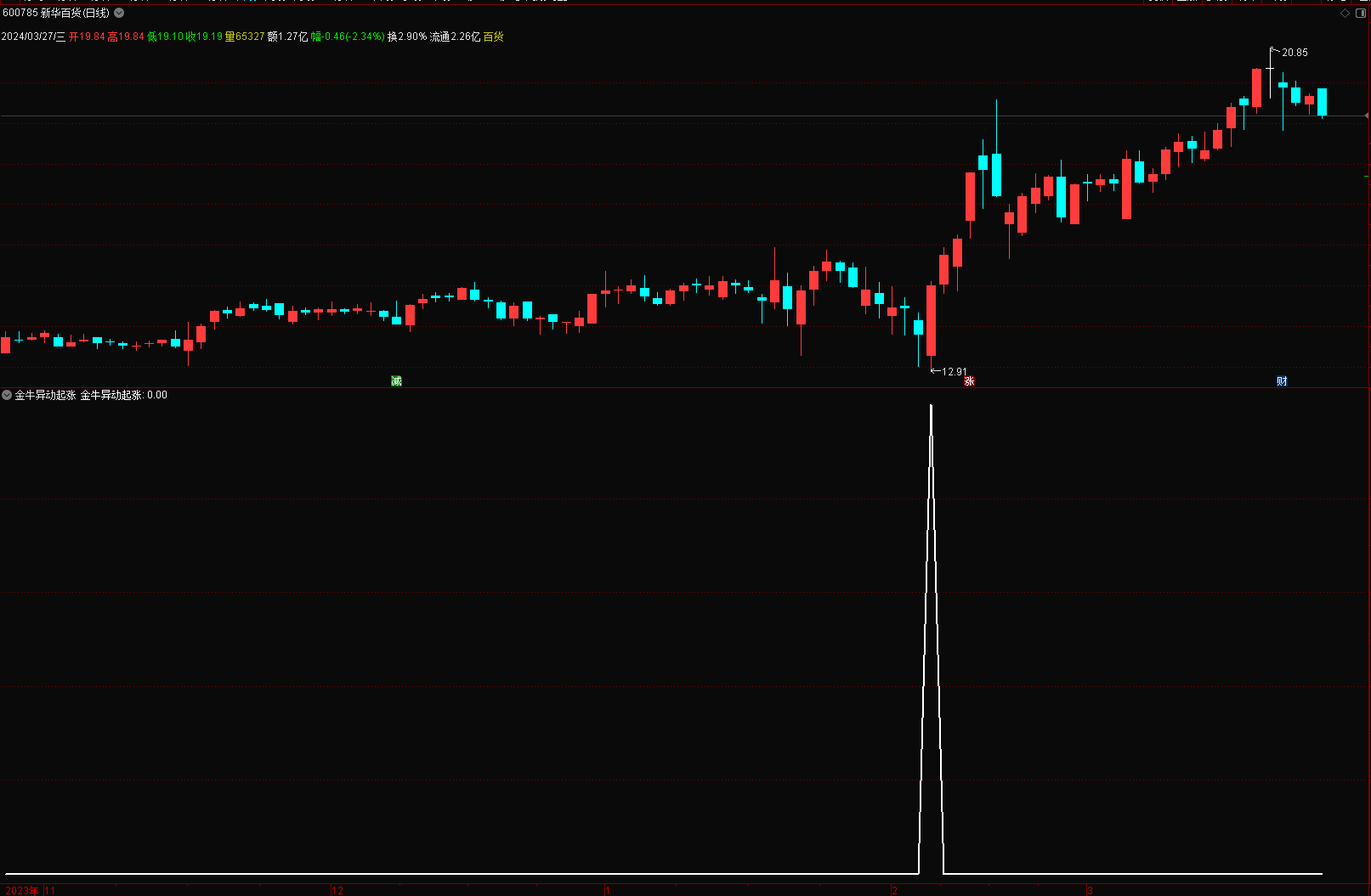 (金典通达信金牛异动起涨选股副图指标源码,无未来,股市长虹!)