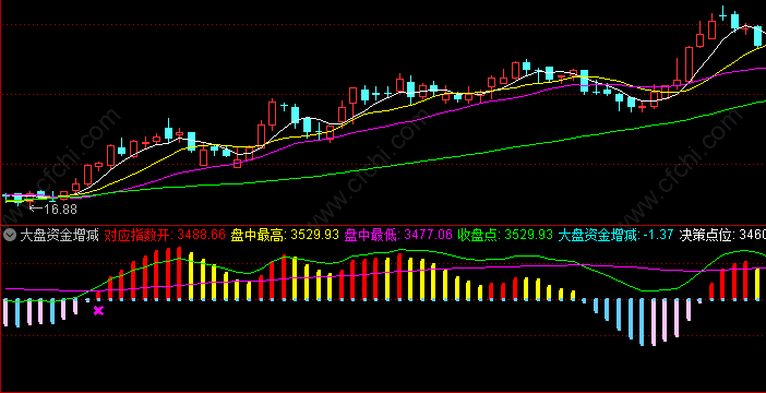 (大盘资金增减-通达信副图指标公式[ZS0065])