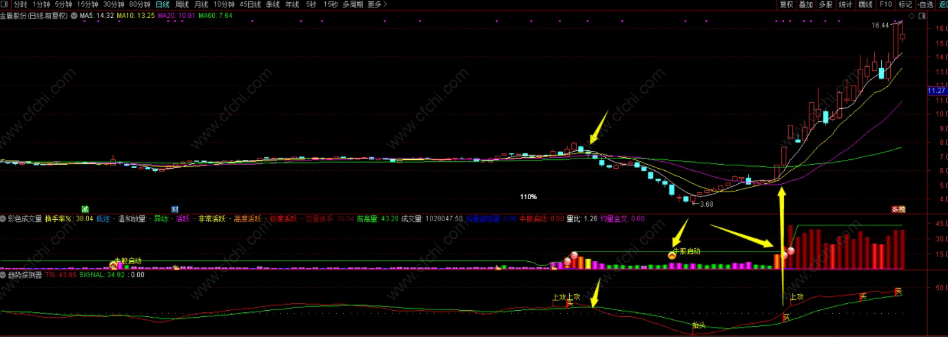 (【趋势探测器】,自用指标,主抓趋势波段大牛股,无未来,信号不漂移)