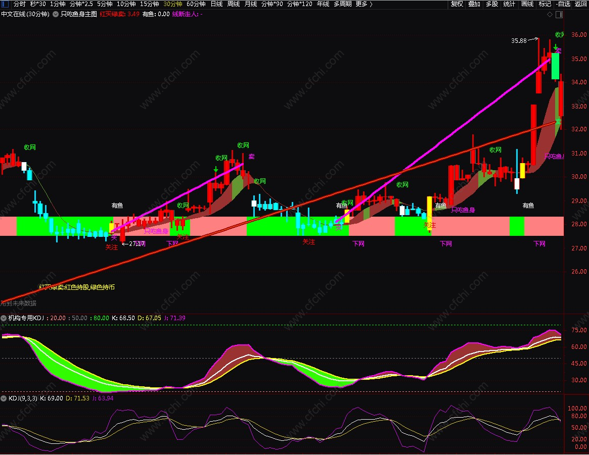 上图是30分钟K线效果图(可做T)
