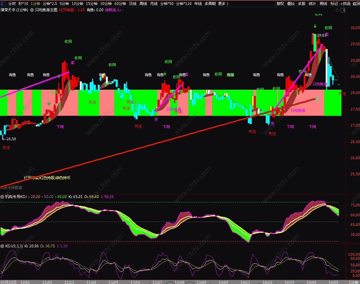 上图是1分钟K线效果图(可做T)