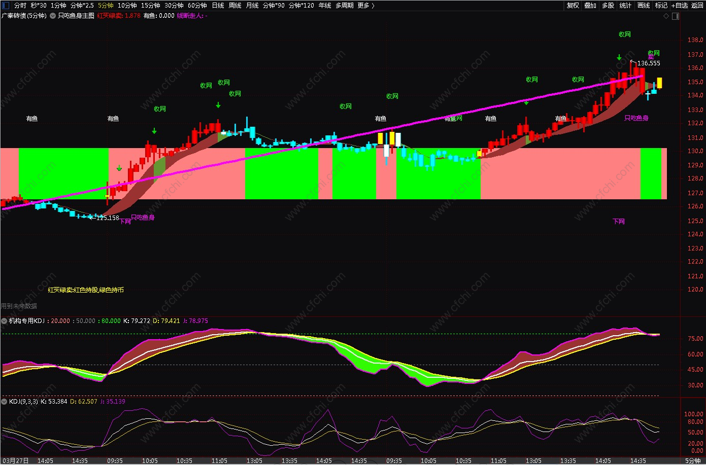 上图是可转债5分钟K线效果图(可做T+0)