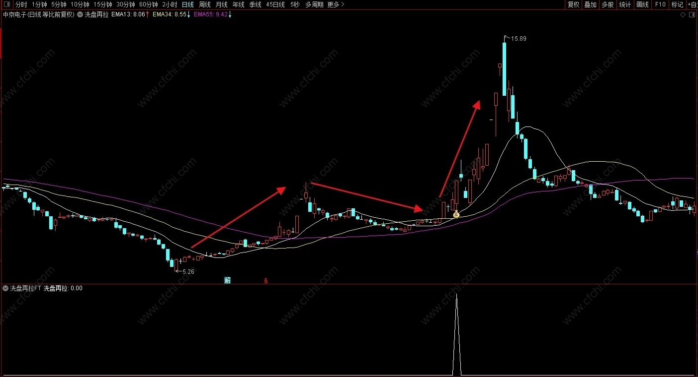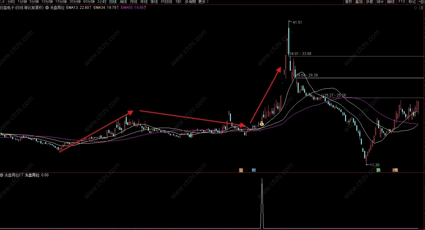 (【洗盘再拉】通达信洗盘再拉副图选股指标,股价上涨后调整回踩再拉升!源码分享)