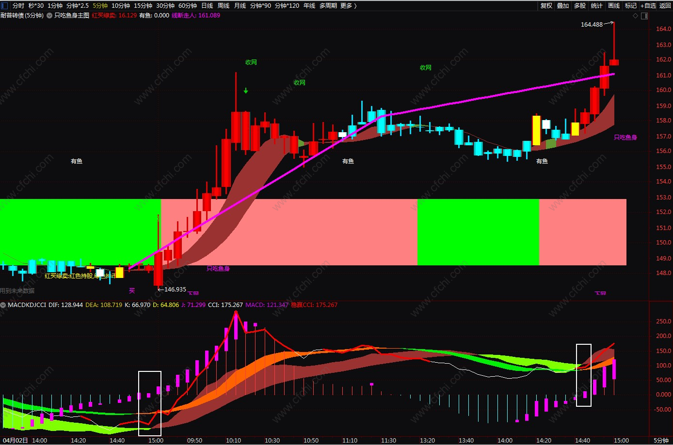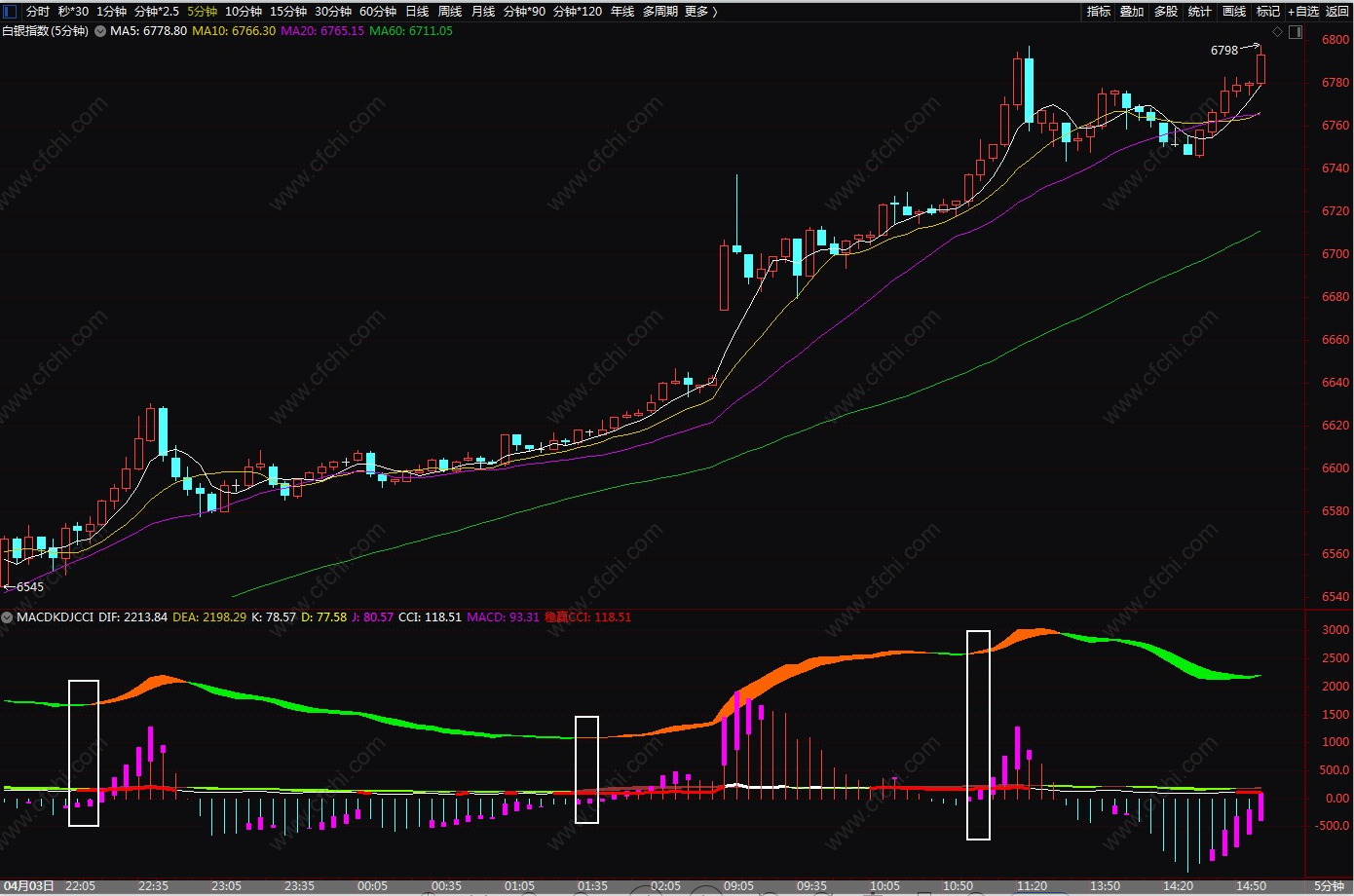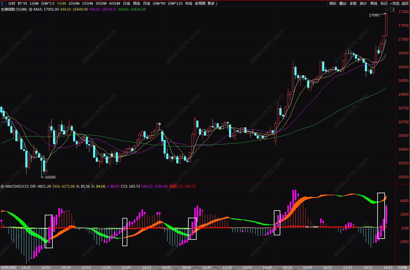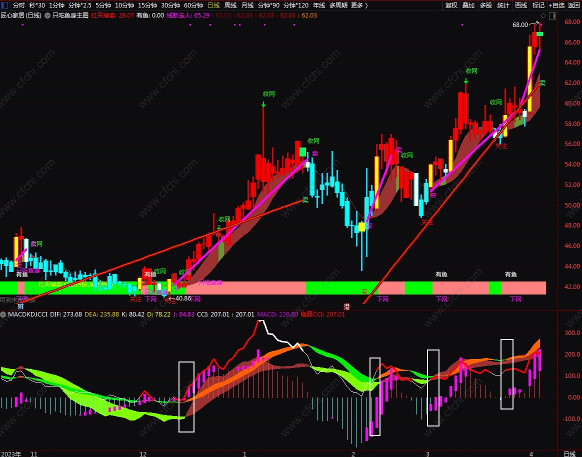 (MACD,KDJ,CCI三指标优化参数合一副图.过滤虚假的买入信号,找到共振高质量的成功买入信号。)