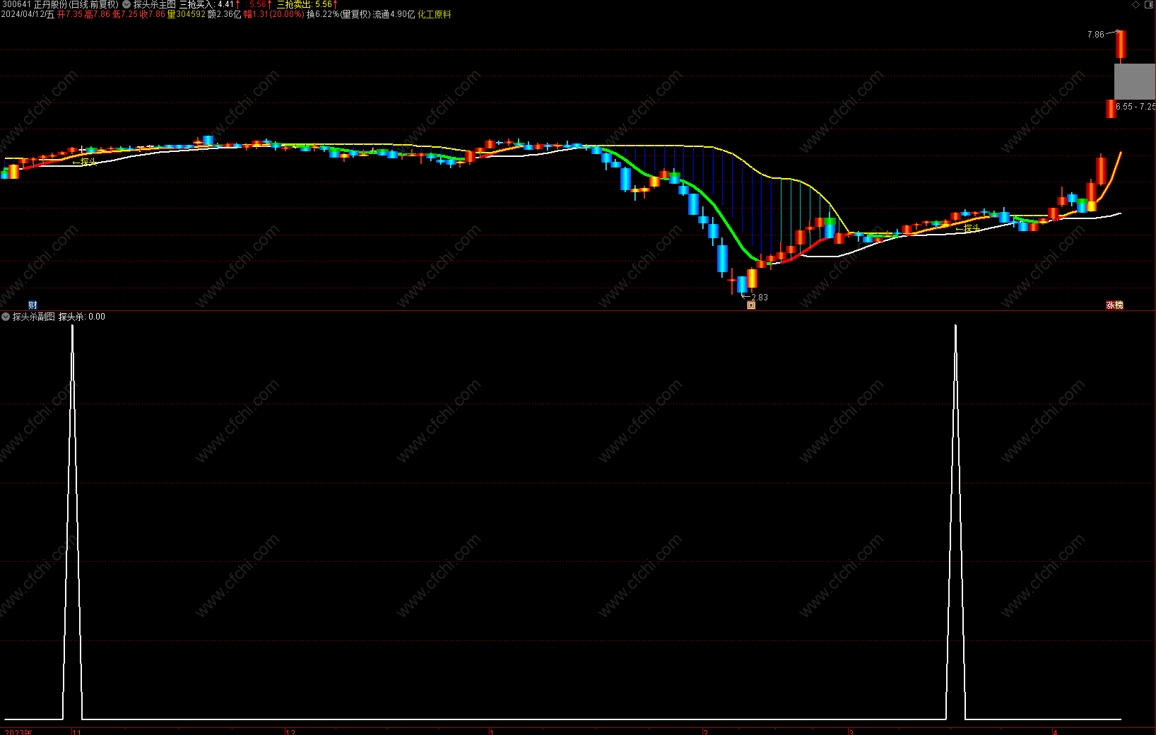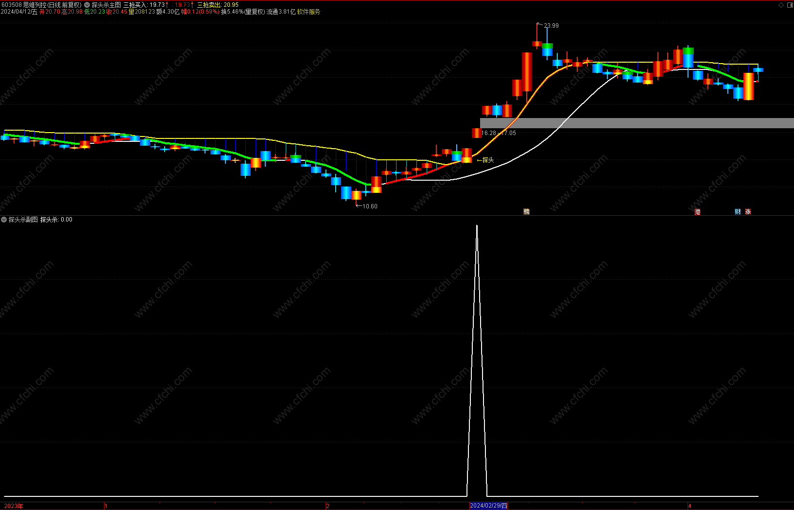 注意:指标是结合行情判断个股最佳的操作方法。如果能够灵活的运用好指标,对于判断个股是有很大帮助的。探头杀就是一个波段操作的指标。提供买入和卖出点位提示,用于判别个股现在是否处在压力和支撑位之上。同时能够寻找出起爆点。