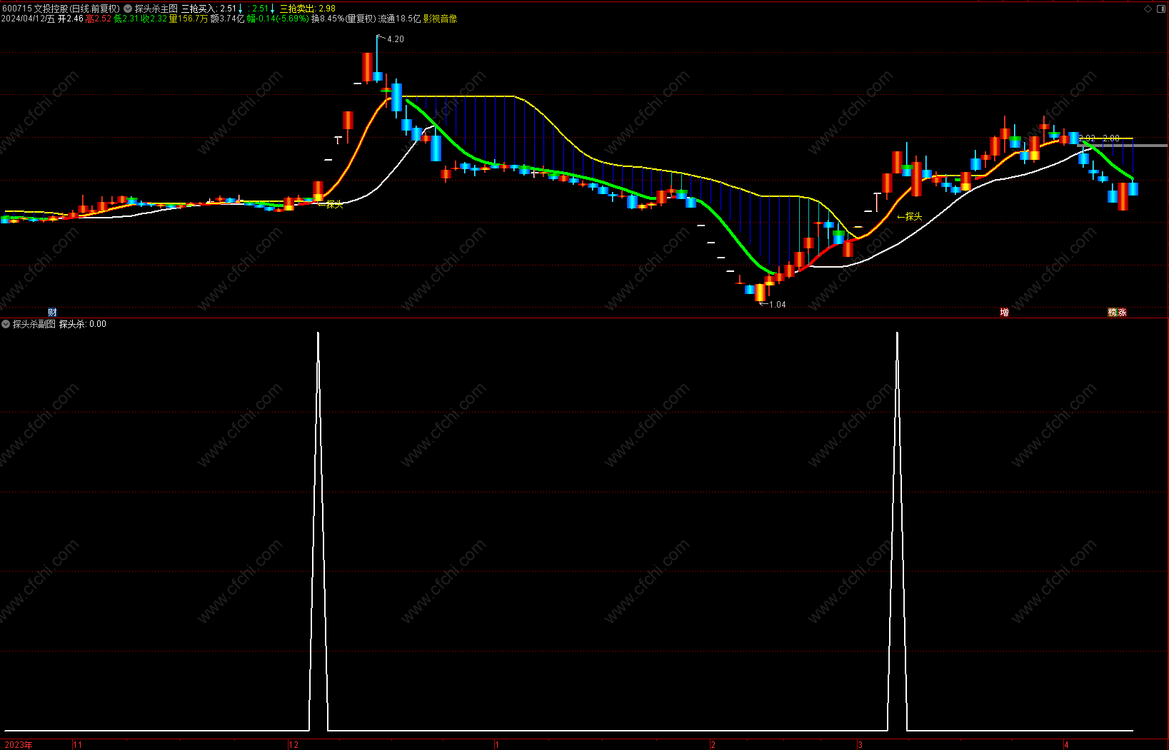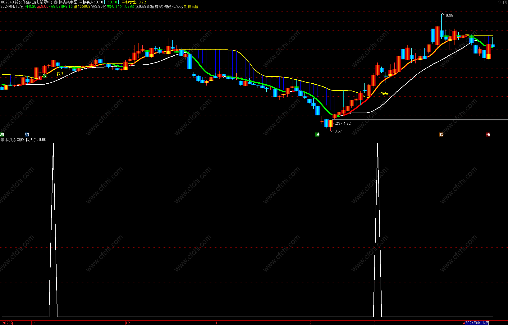 “探头杀”主图指标,包含选股指标,指标没有未来函数。
