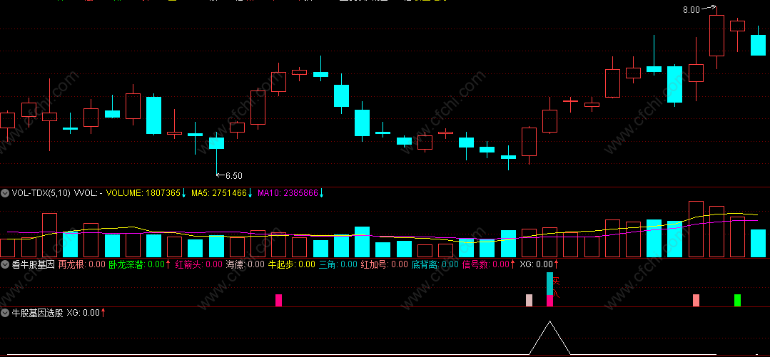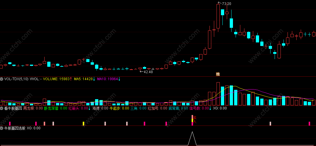 主要用来看牛股基因,当基因叠加到三个,即可买入,概率很高,多寻找规律进行埋伏是最安全的。
