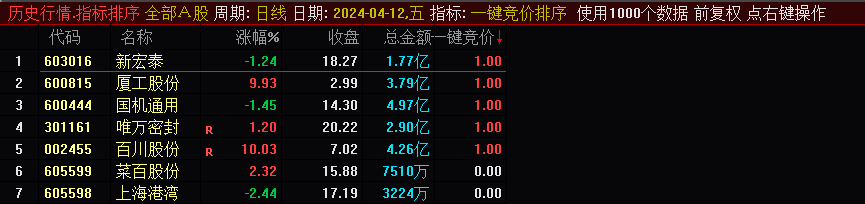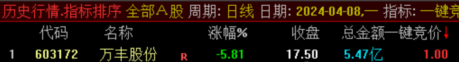 (通达信一键竞价选股排序,秒杀型竞价,全A排序,源码排序选股指标分享)