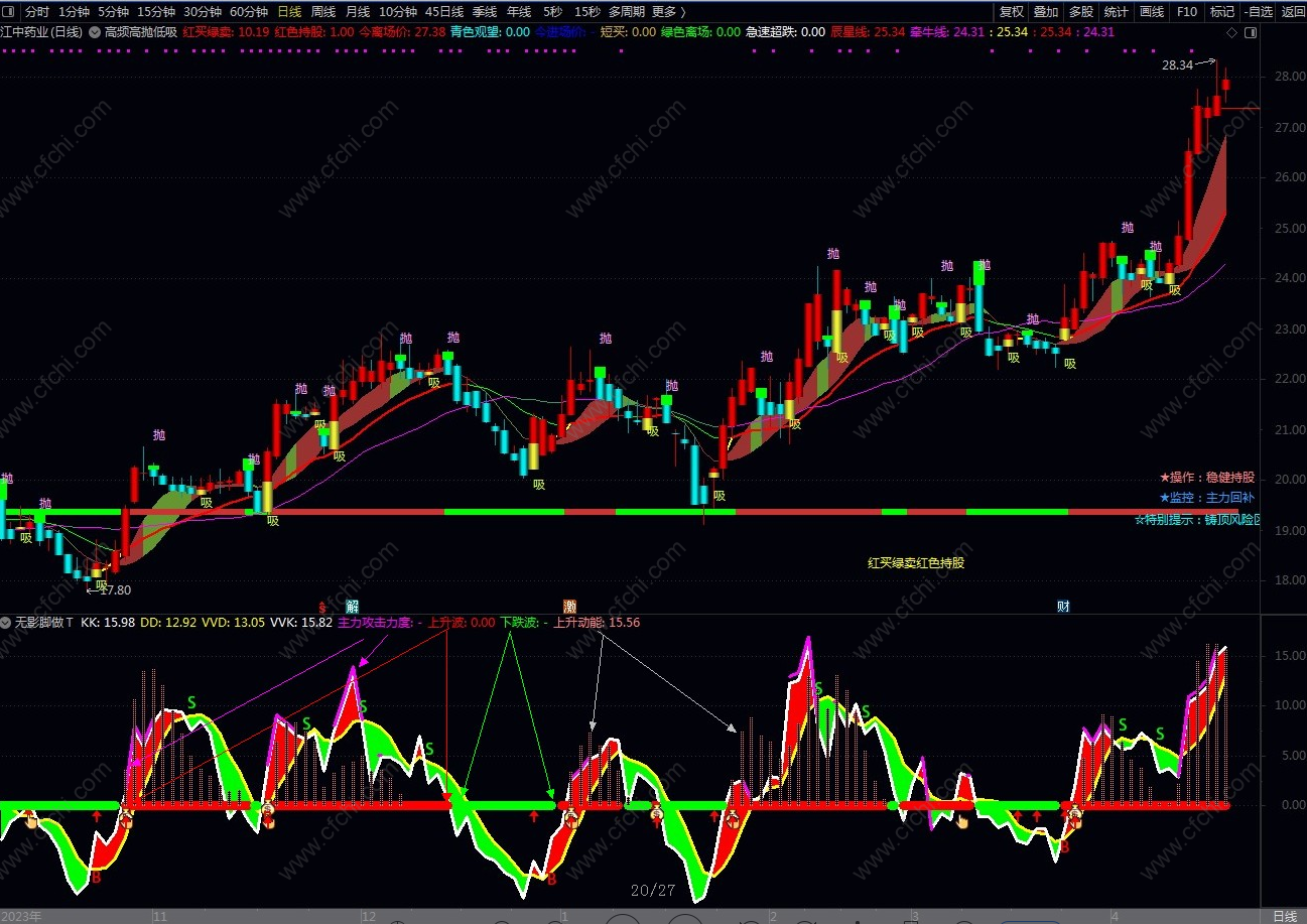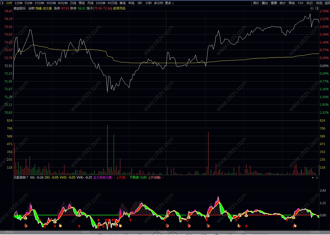 精华版:分时主力吸筹:增加了买入点提示,效果不错。手机电脑都可用。