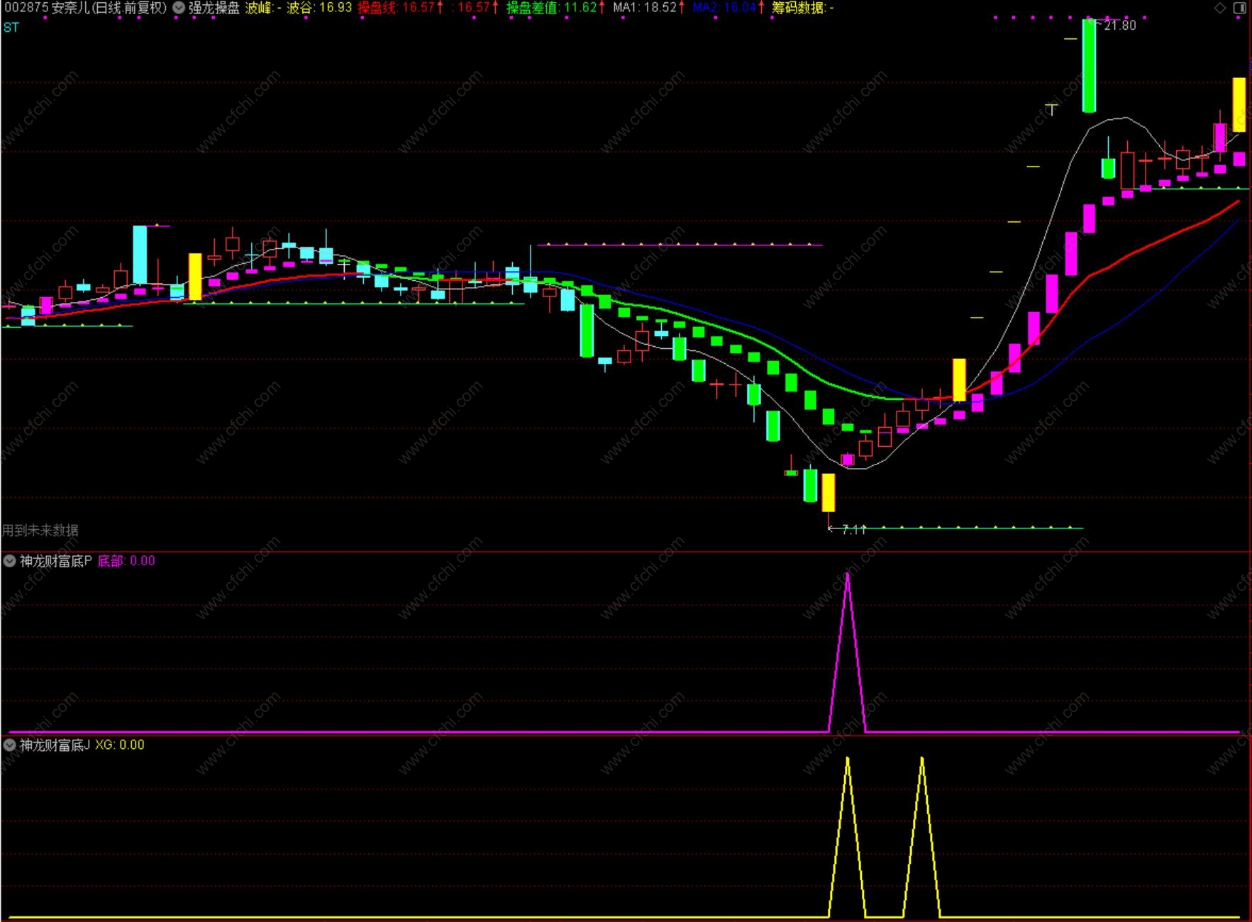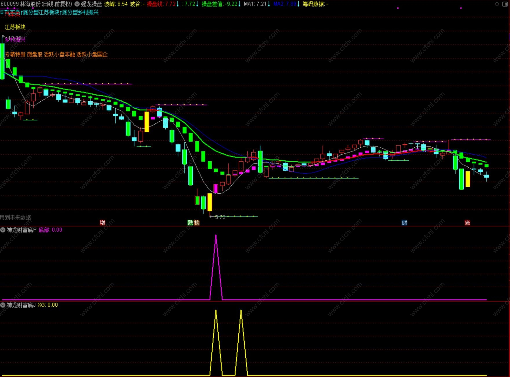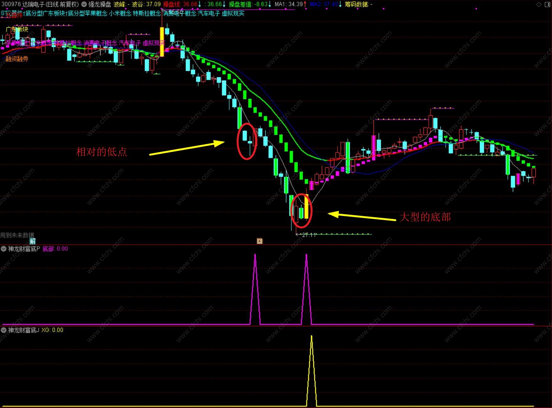 (通达信【神龙财富底】副图选股双指标,精选打造高胜率底部操作信号,源码指标分享)