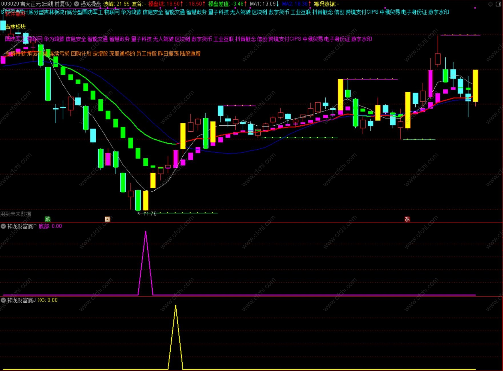 本帖指标包含两个副图公式和相应的两个选股公式,神龙财富底P可以看成普选公式,信号包括大型底部和相对低点两种,寻大底可以结合神龙财富底J共振,没有大底信号可以用它来做相对底部,无论哪种信号短线是没有问题的。