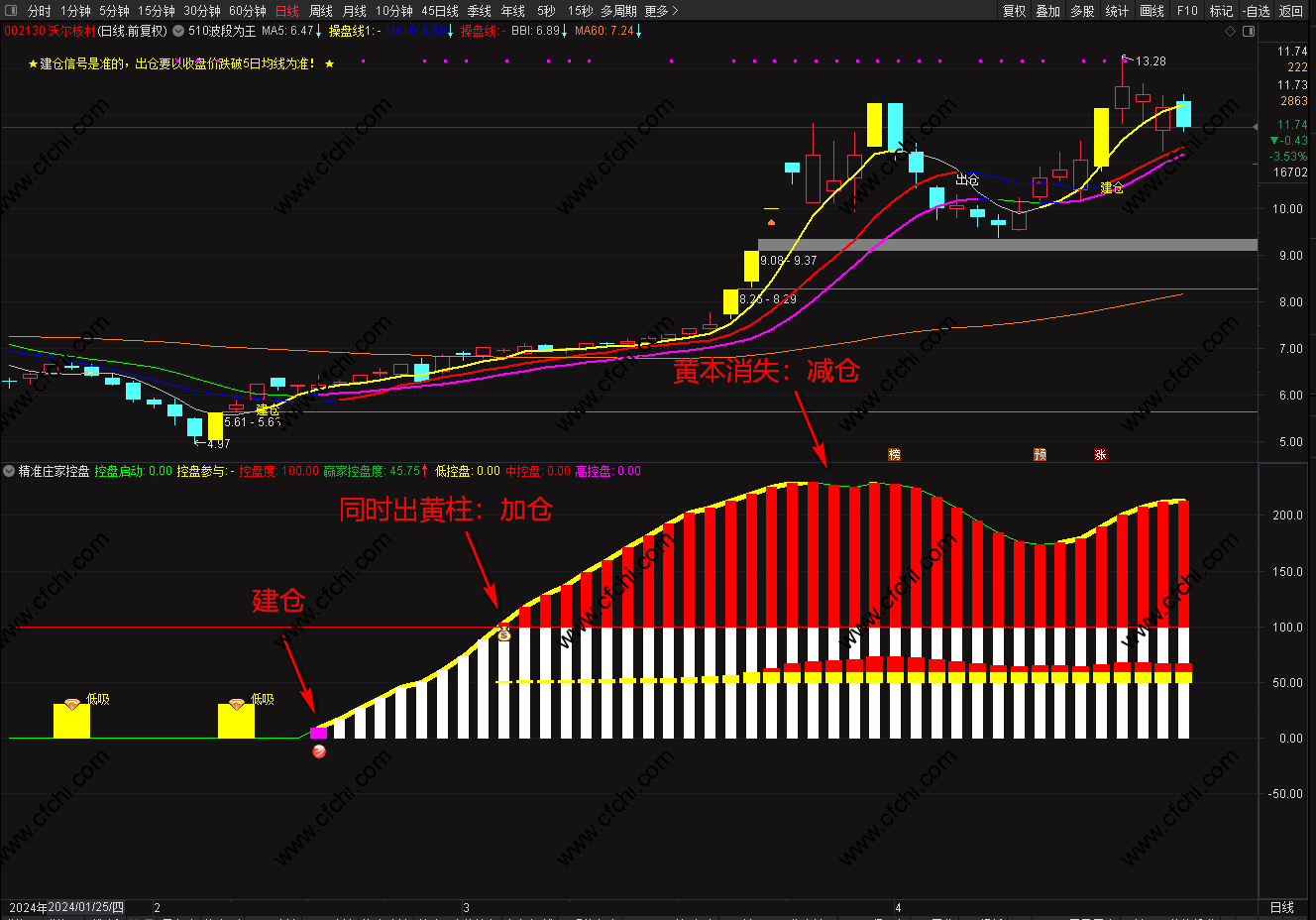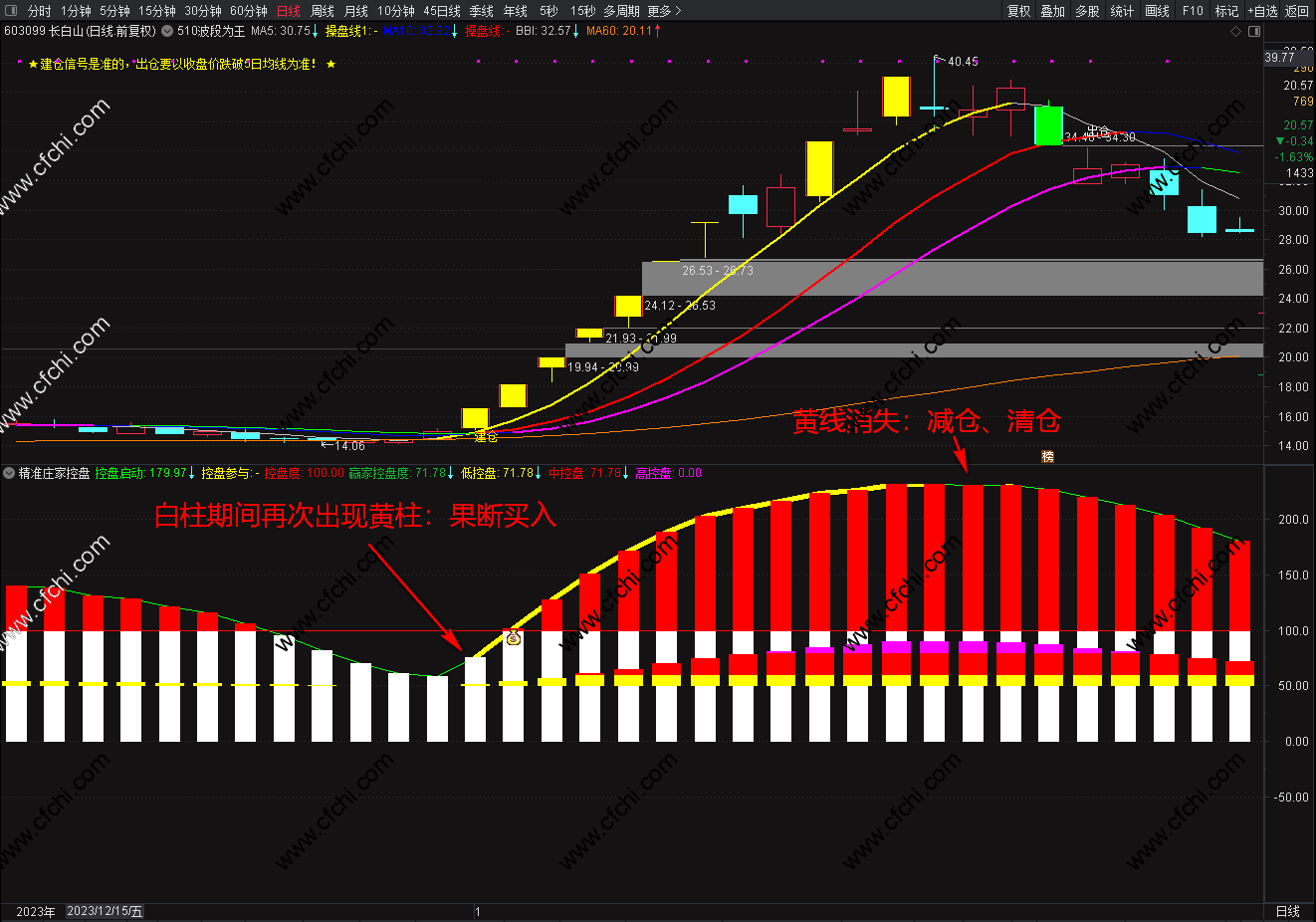 3、白柱+黄线期间,同时又出现黄柱,可加仓;