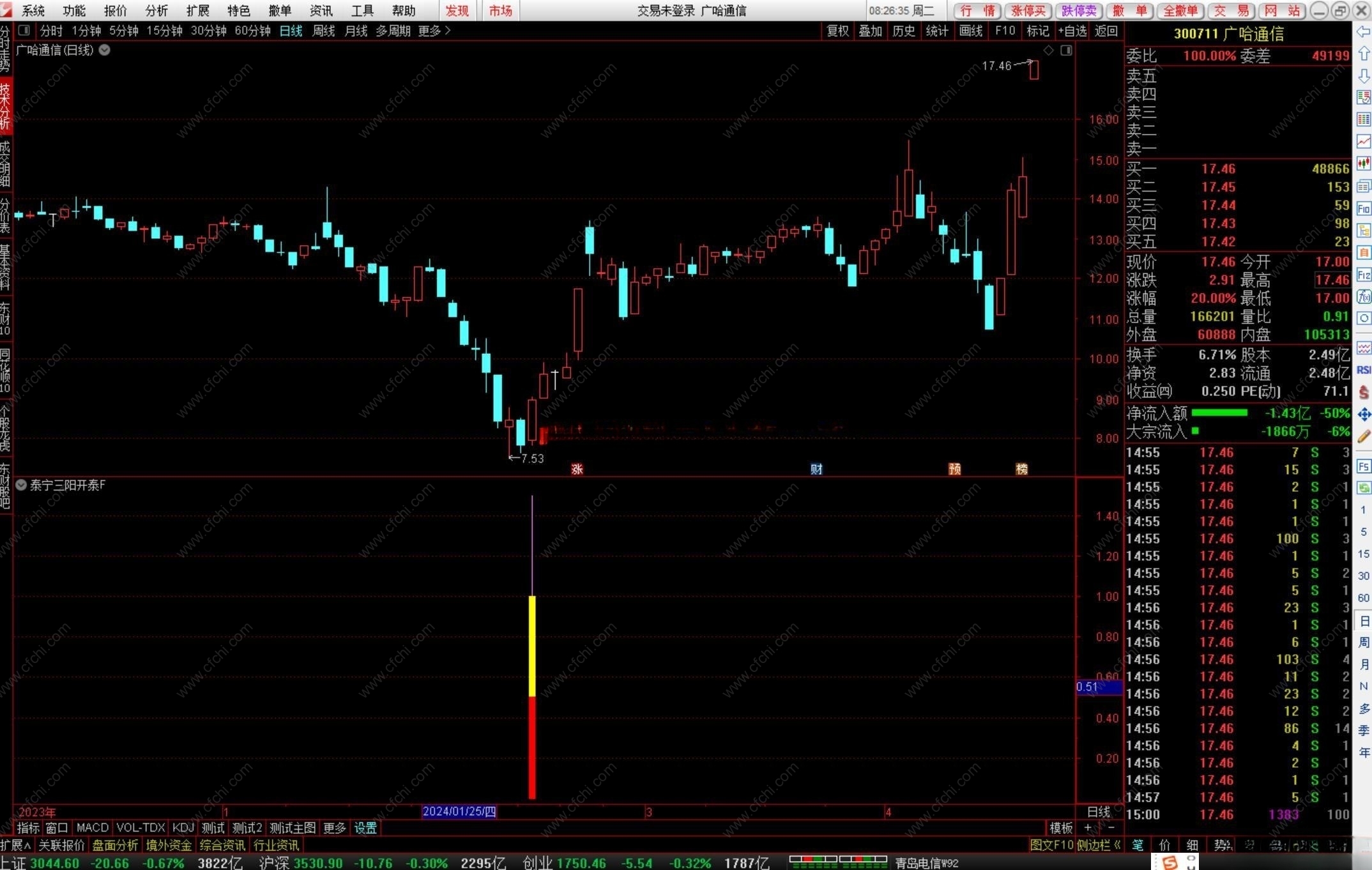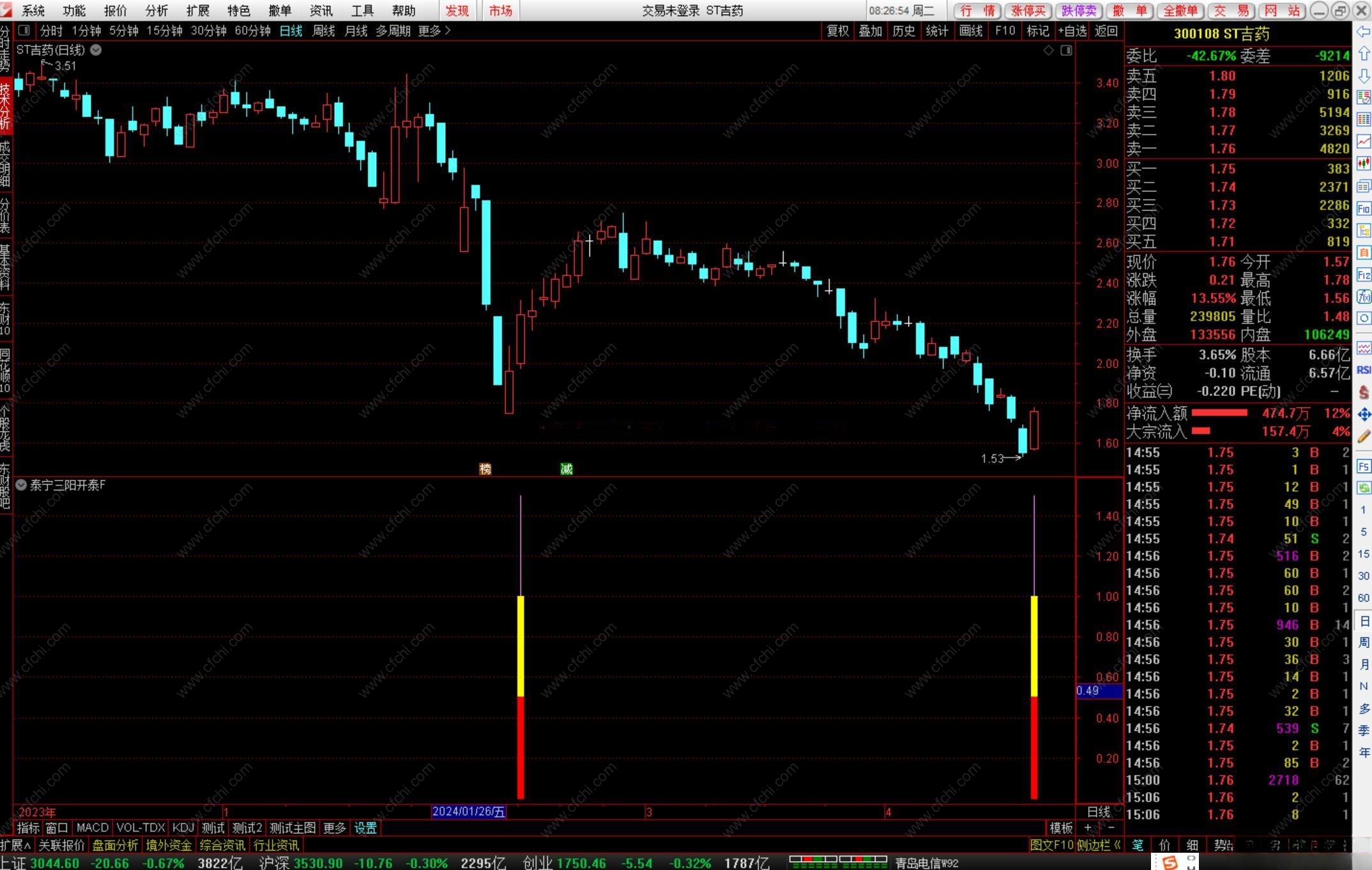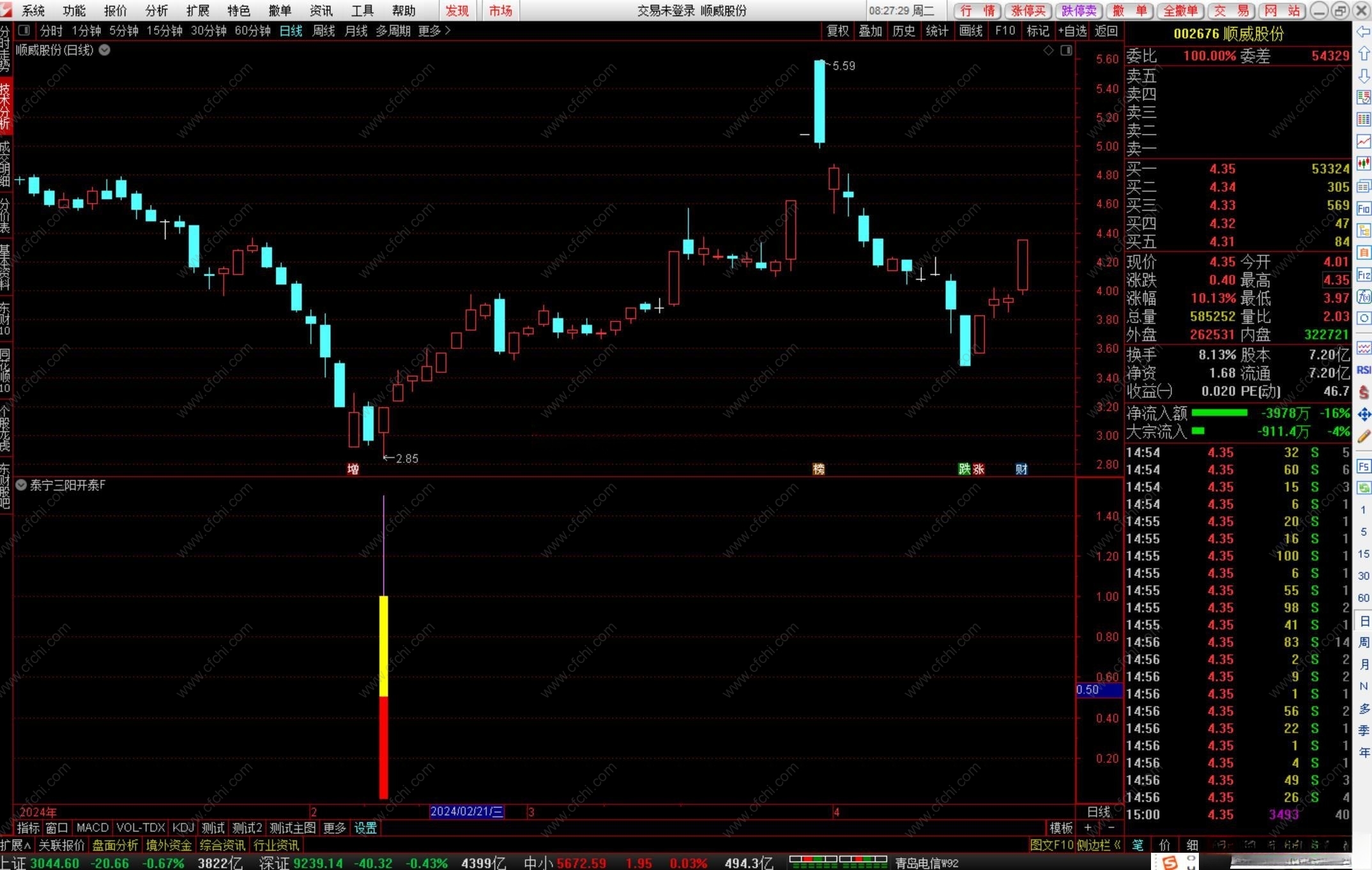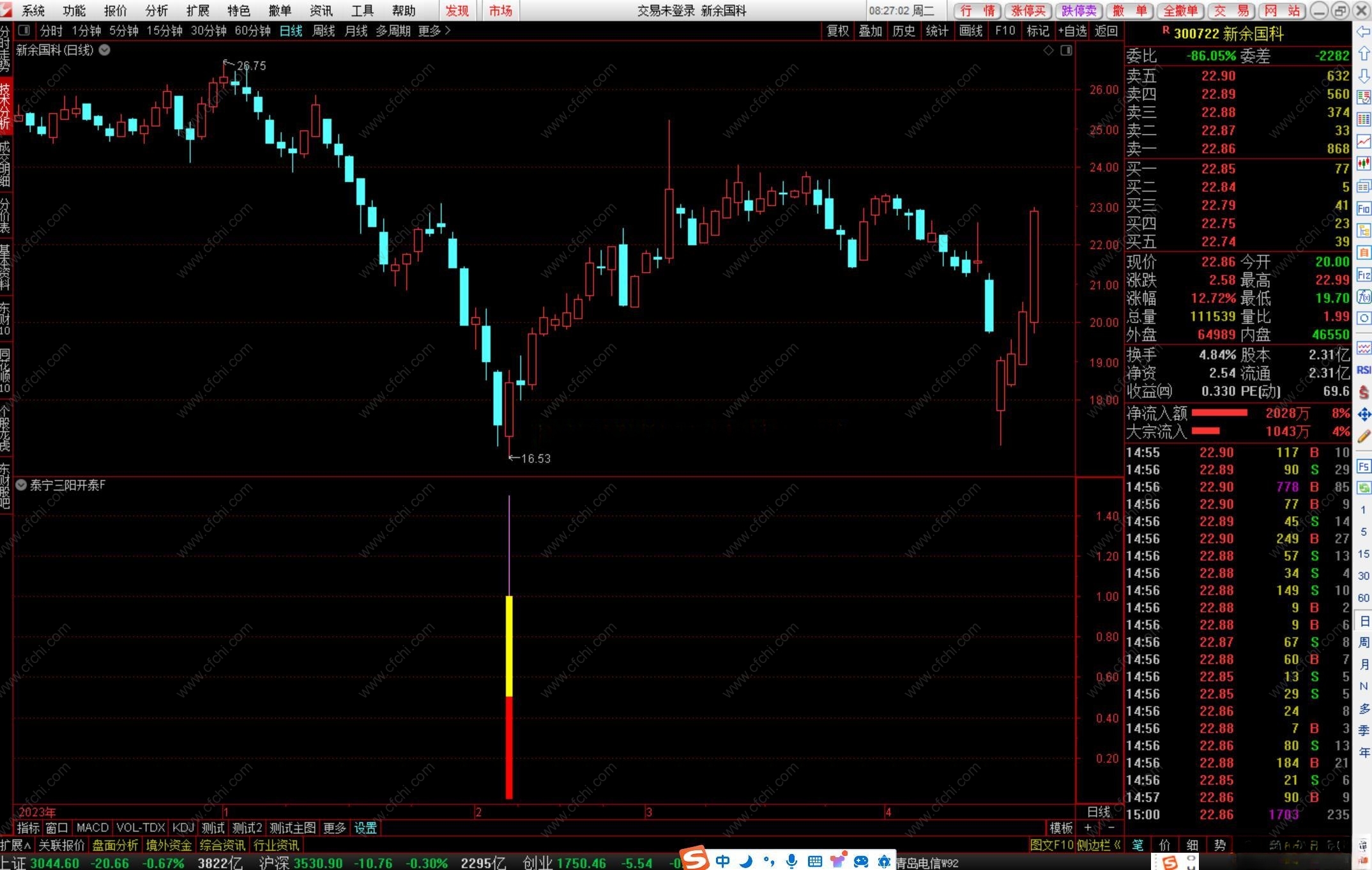 指标抄底类指标,出现三阳开泰信号,要及时抓住跟进(好股不是天天有、一定要珍惜)、躺赢(注意:必须剔除ST)。
