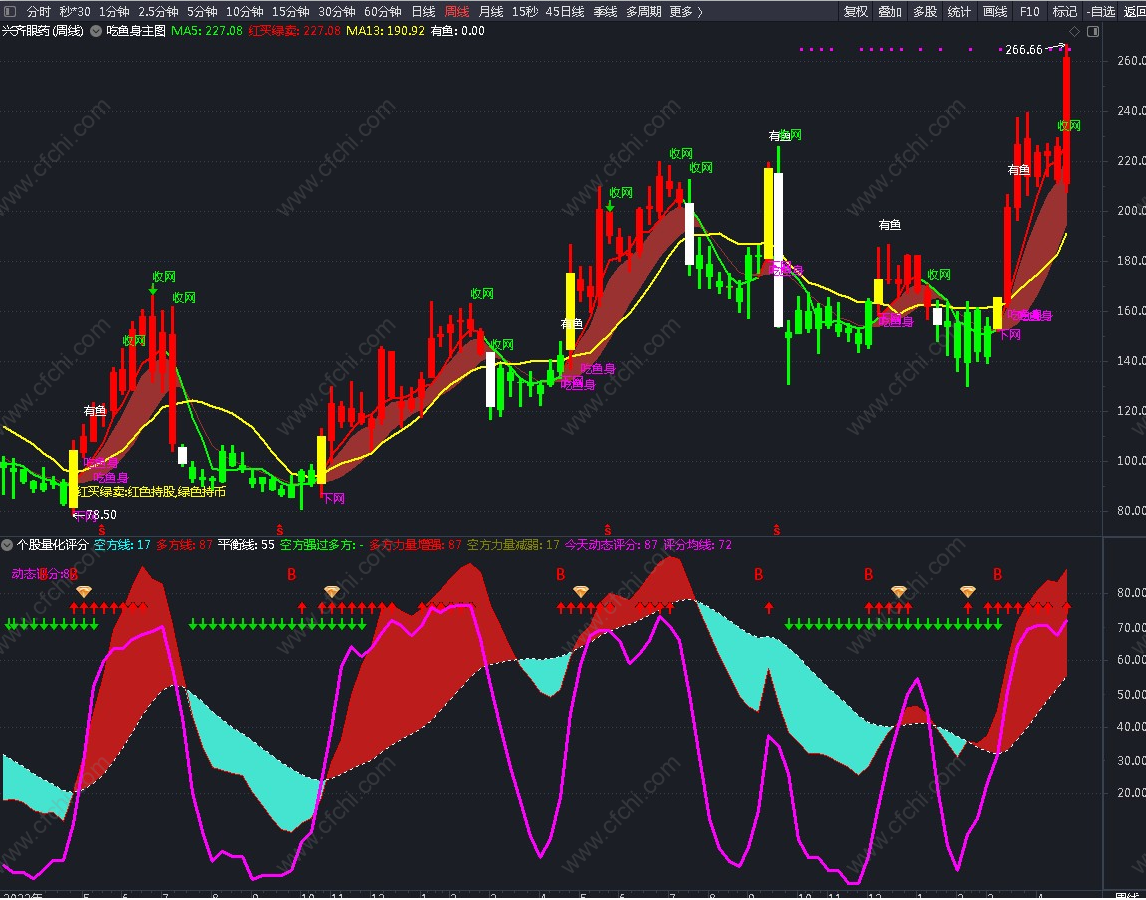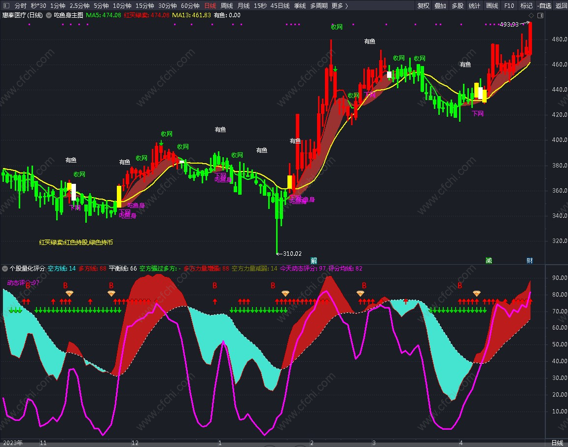 (个股量化评分副图加选股指标,能精准判断顶底,加上多空线适合做主升浪波段操作,是选股避雷好帮手。)