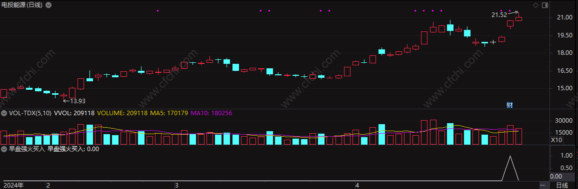 (金典通达信【早盘强火买入】选股副图指标源码)