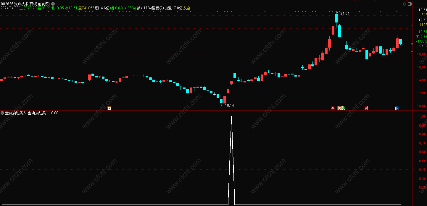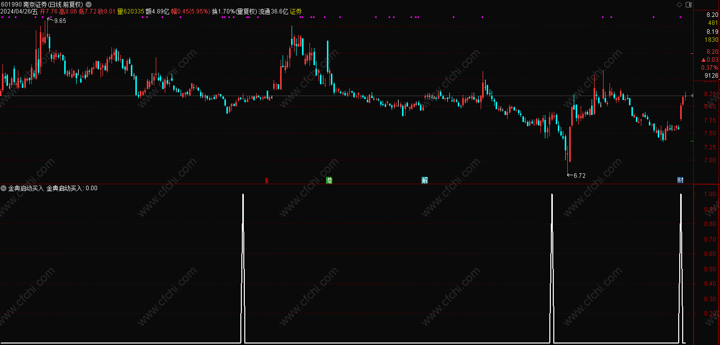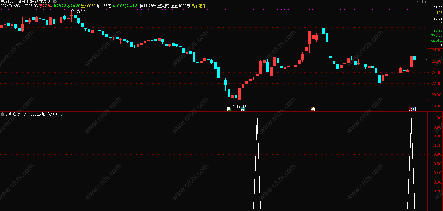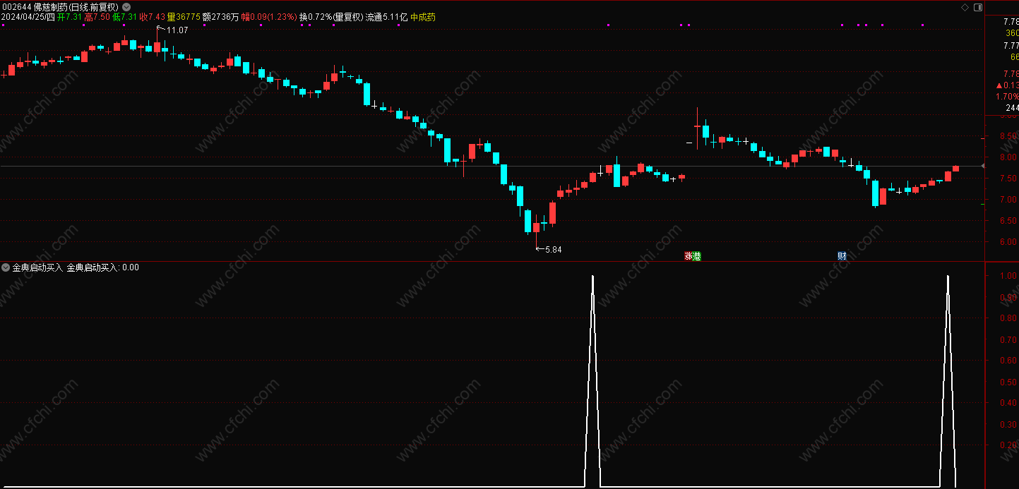 (通达信金股指启动买入选股附图指标,无未来)