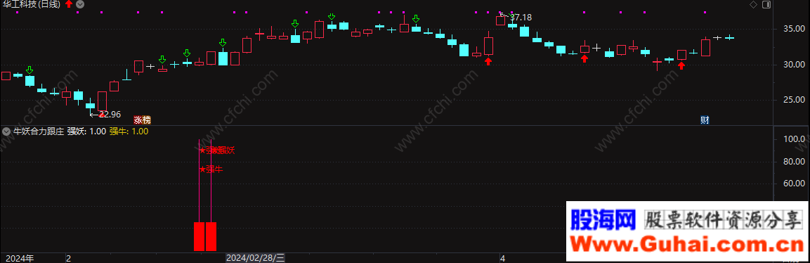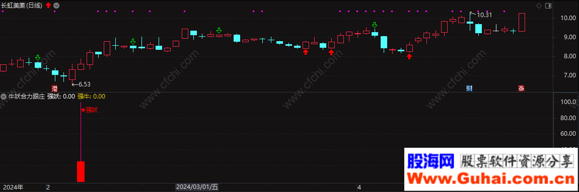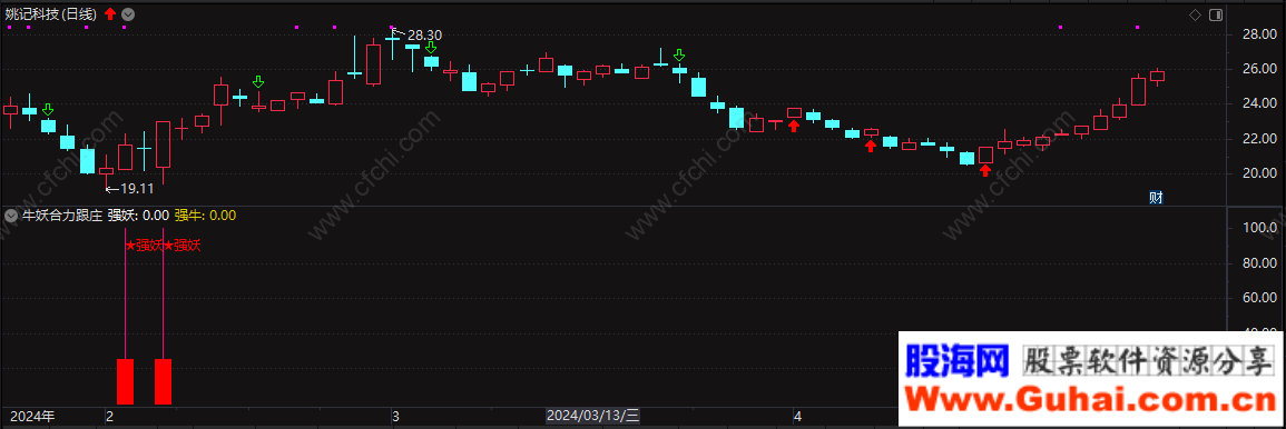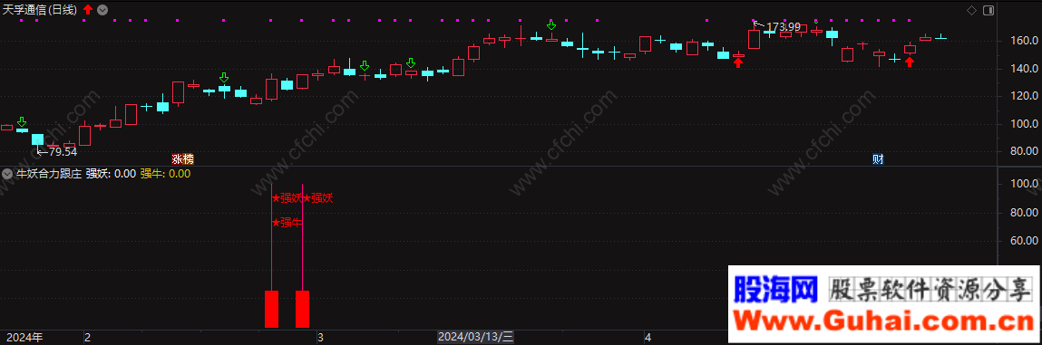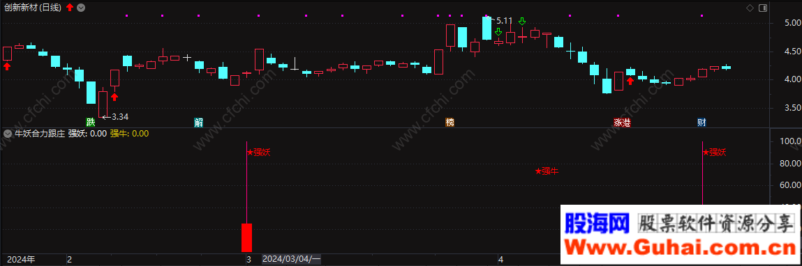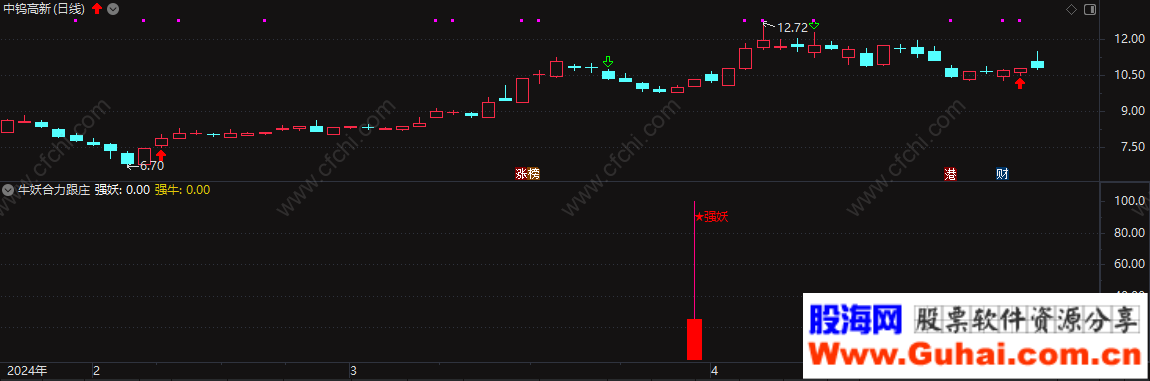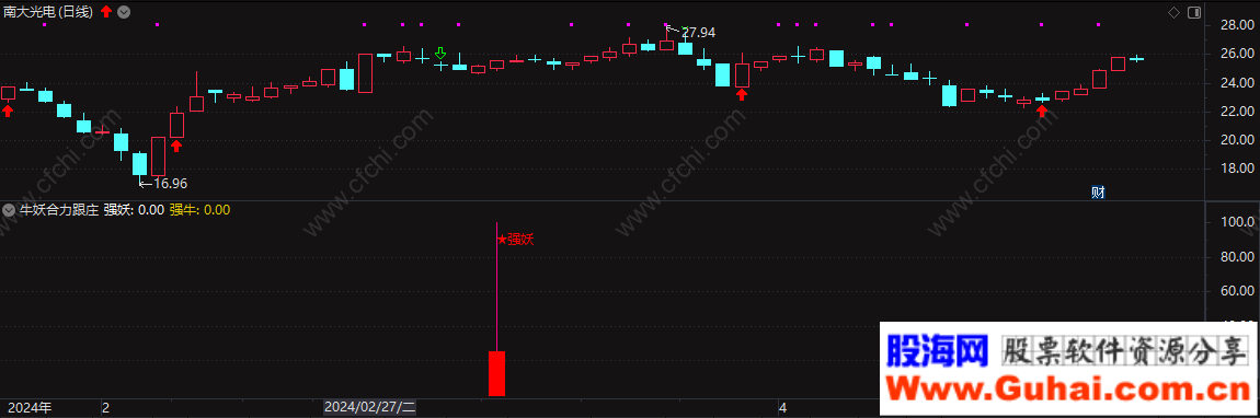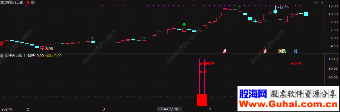 (金典通达信牛妖合力跟庄选股附图指标,无未来)