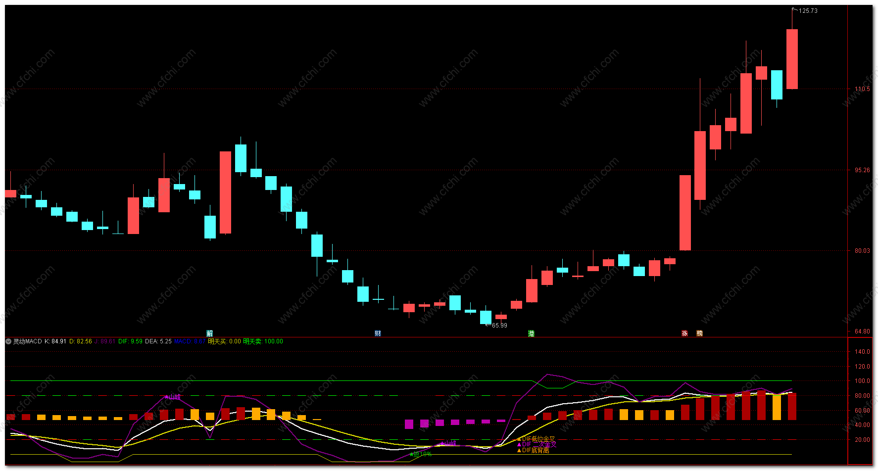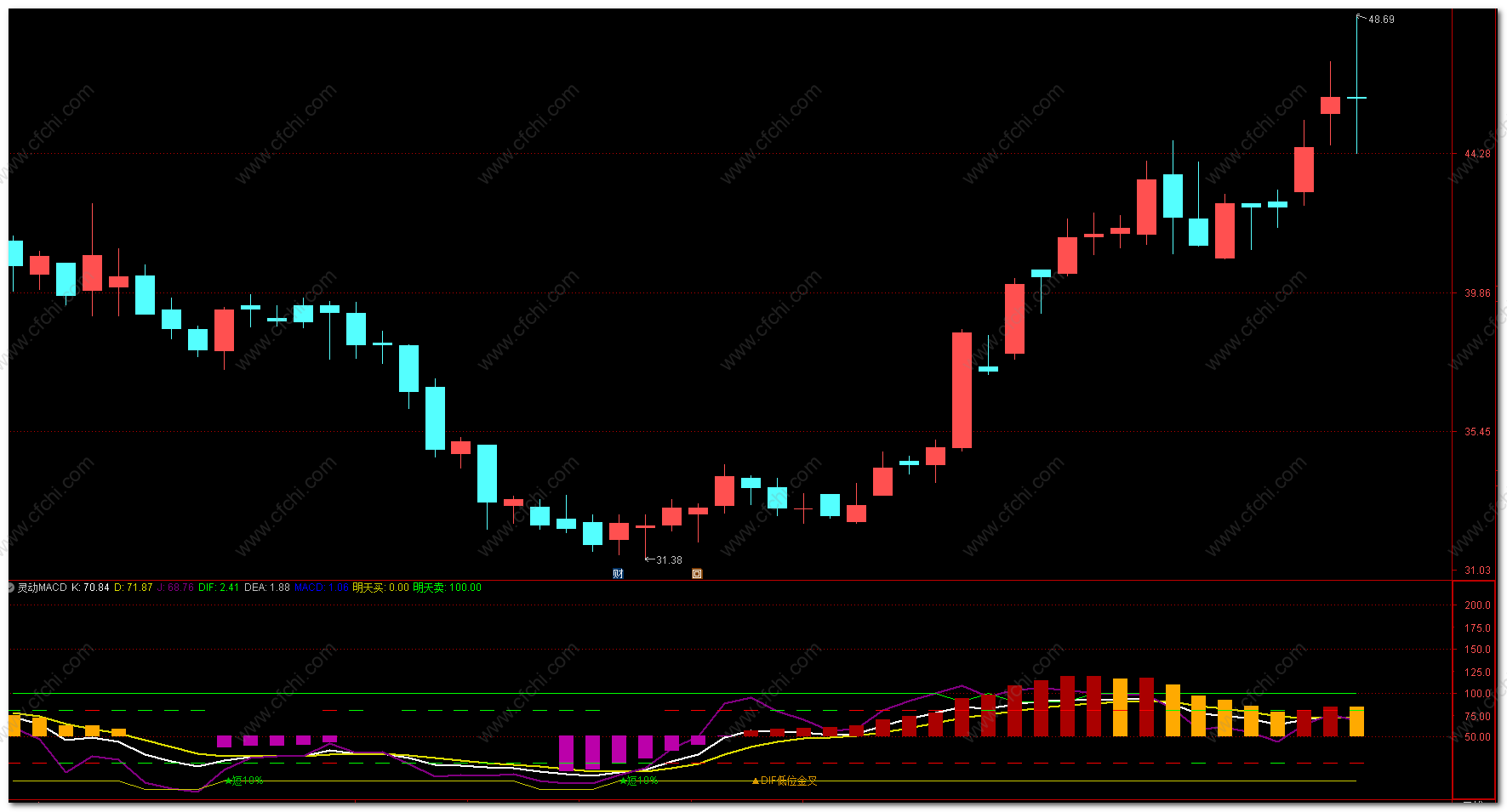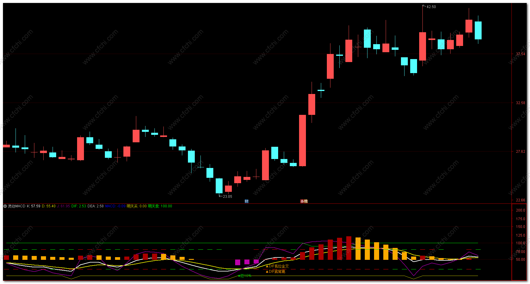 动态买卖点: 灵动MACD通过传统金叉死叉之外的其他综合因素,如短线趋势和量价关系,提供多维度的买卖点信号。