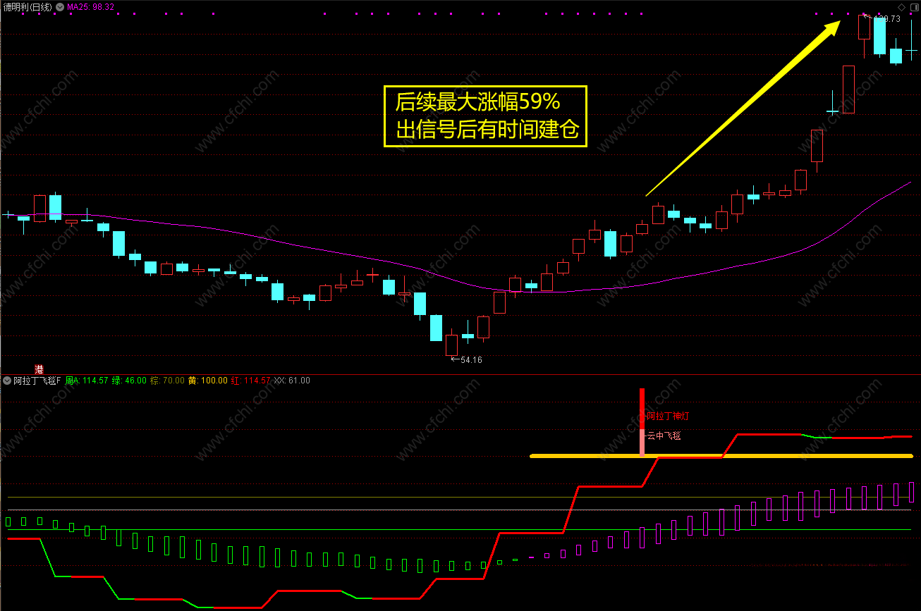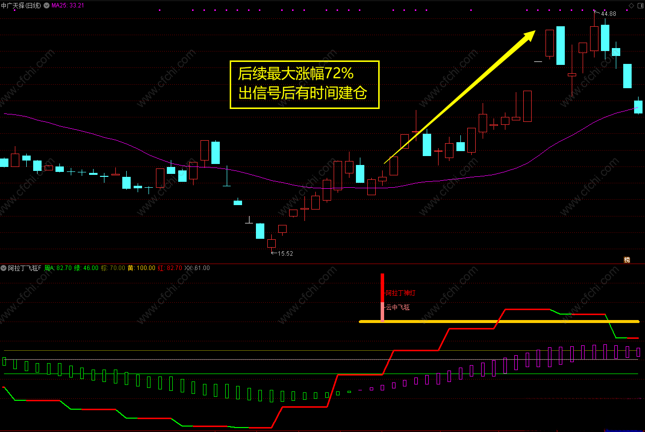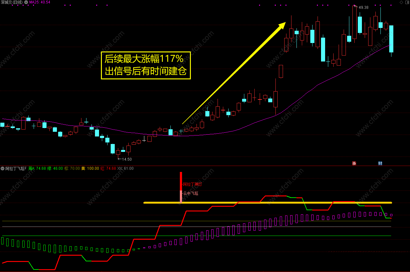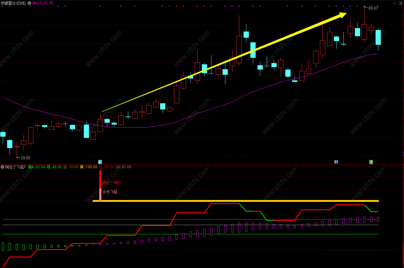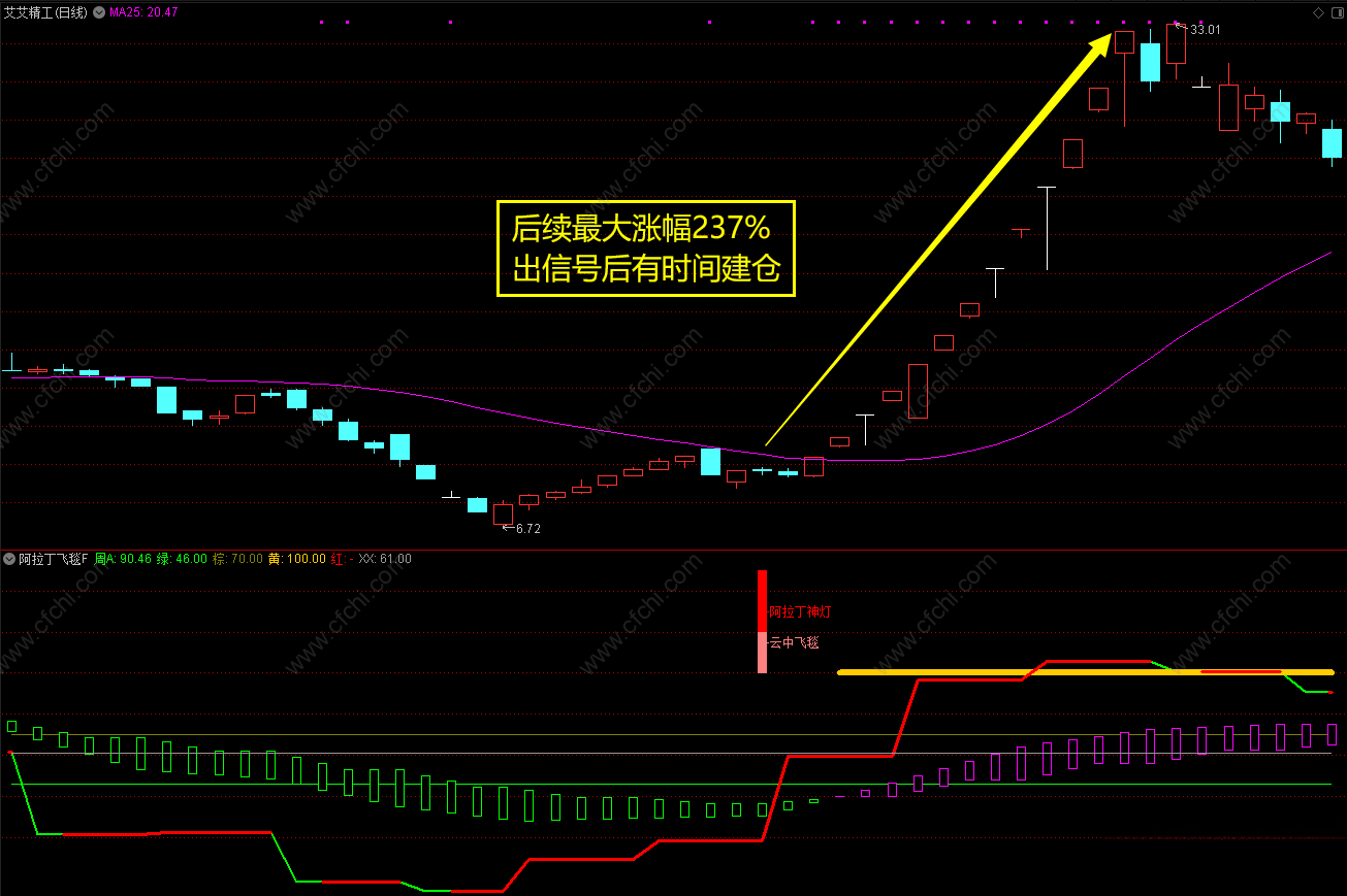 (通达信【阿拉丁飞天魔毯】附图选股指标【波段推荐】适用于波段信号不多有周期函数信号不漂移)