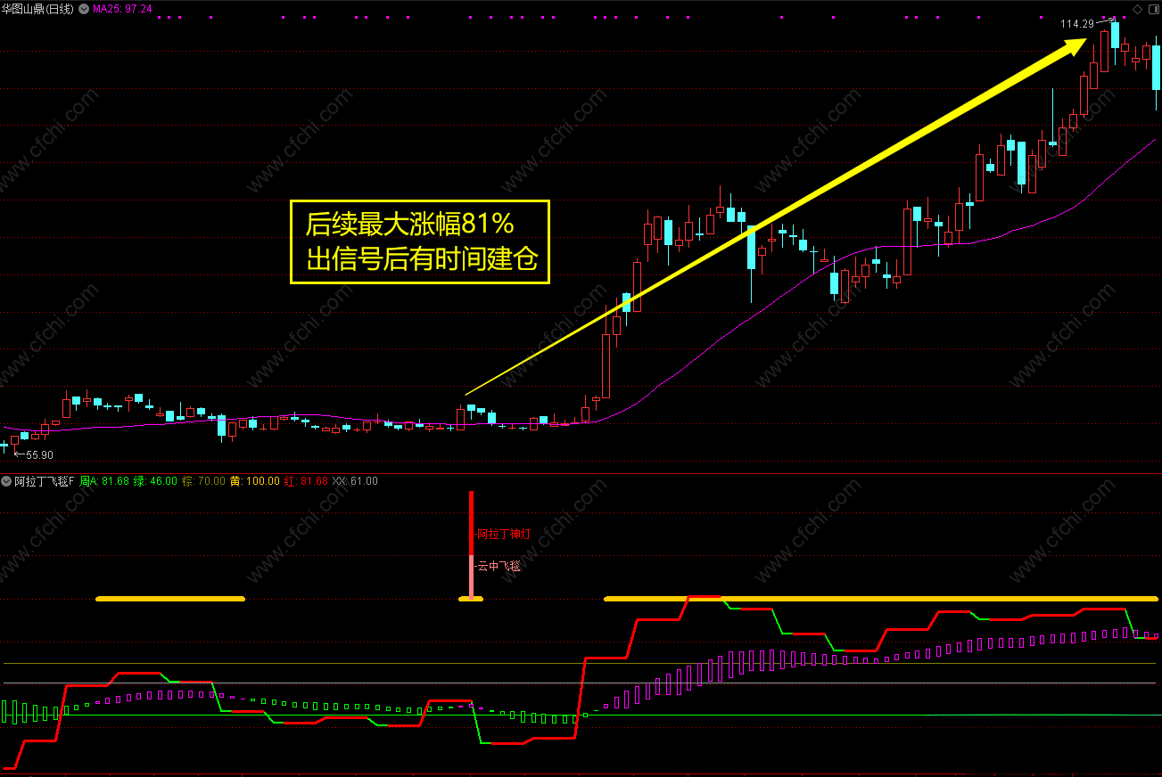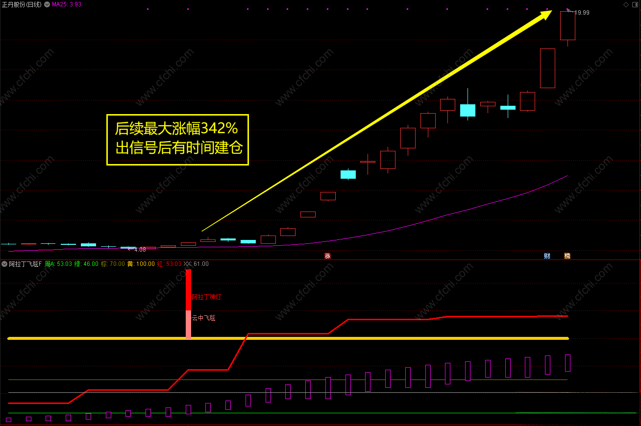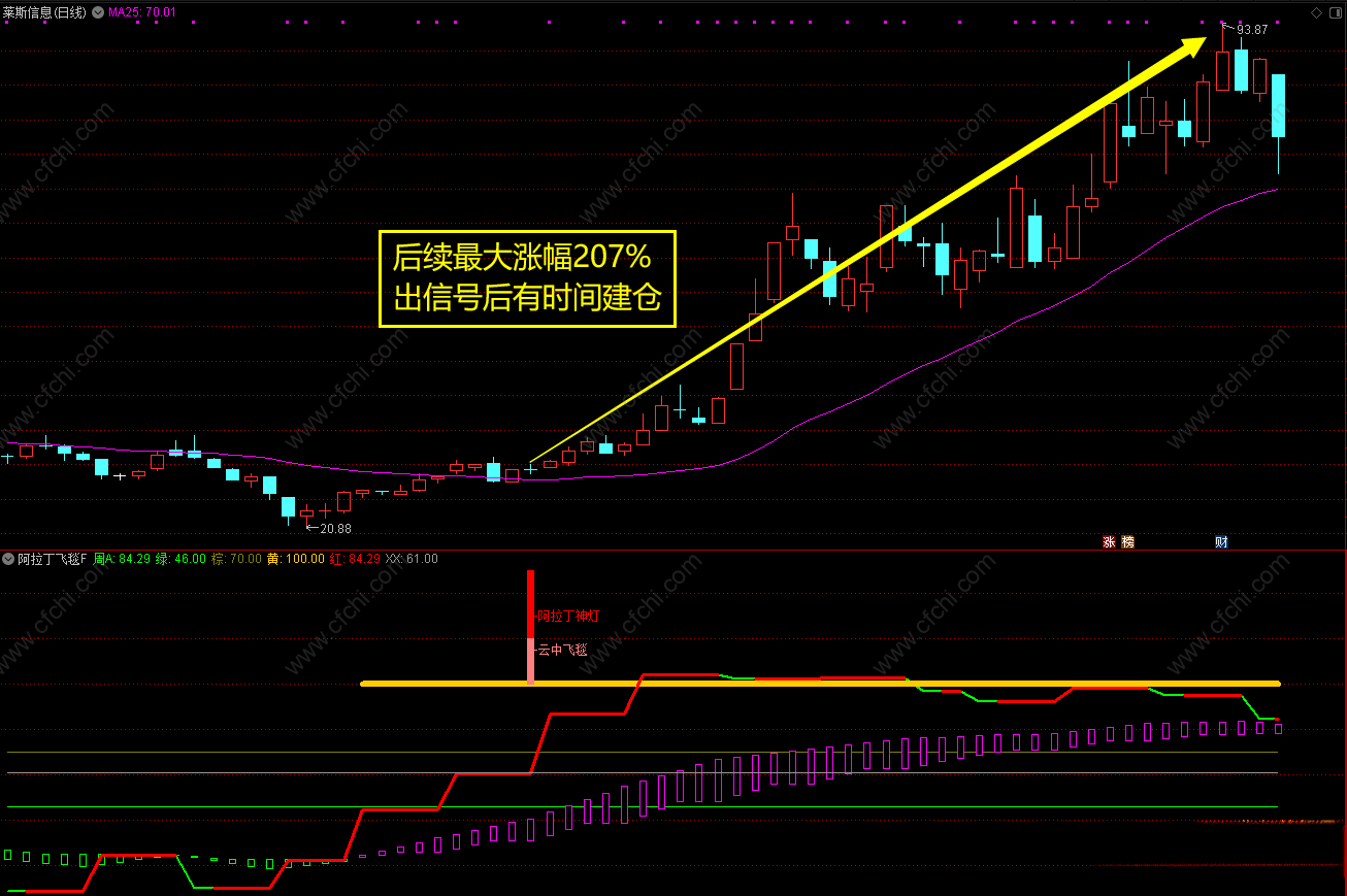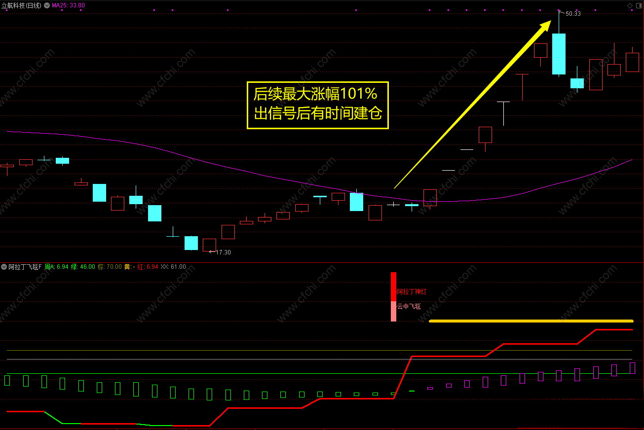 (通达信【阿拉丁飞天魔毯】附图选股指标【波段推荐】适用于波段信号不多有周期函数信号不漂移)