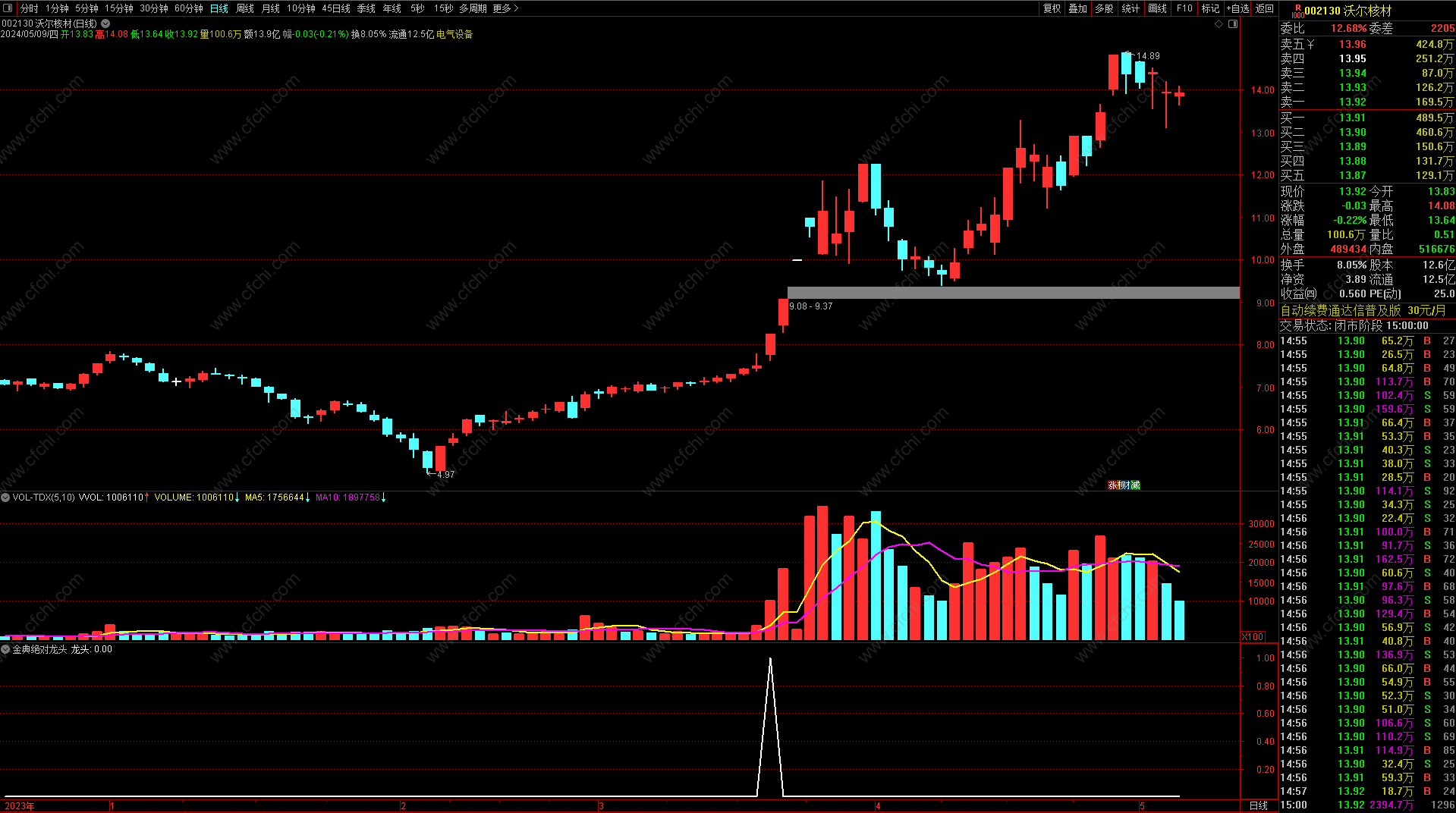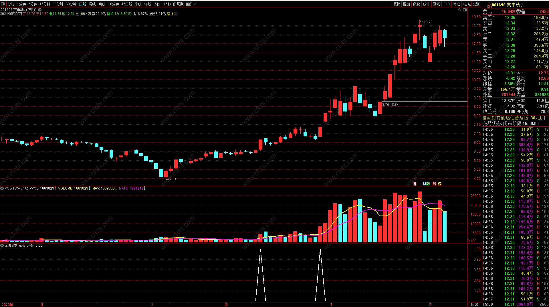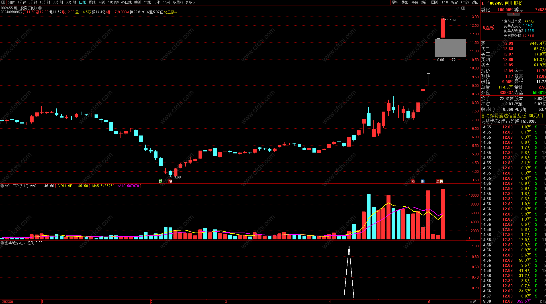 2、不连续涨停的龙头个股,用日线SAR指标判断,SAR指标是中线指标,中线持有该股,直到SAR指标第一次转为卖出信号。