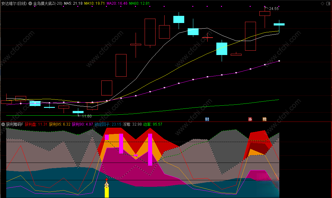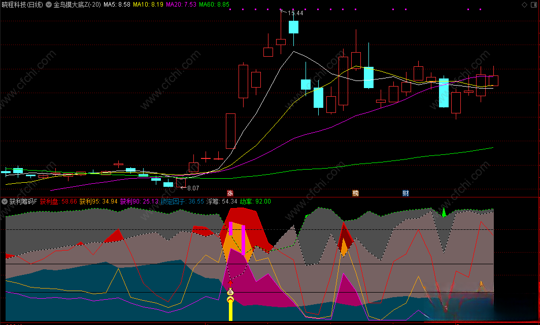(通达信获利筹码副图带选股优化指标 暖色带出现时搭配信号就是主升阶段 手机电脑通达信通用)
