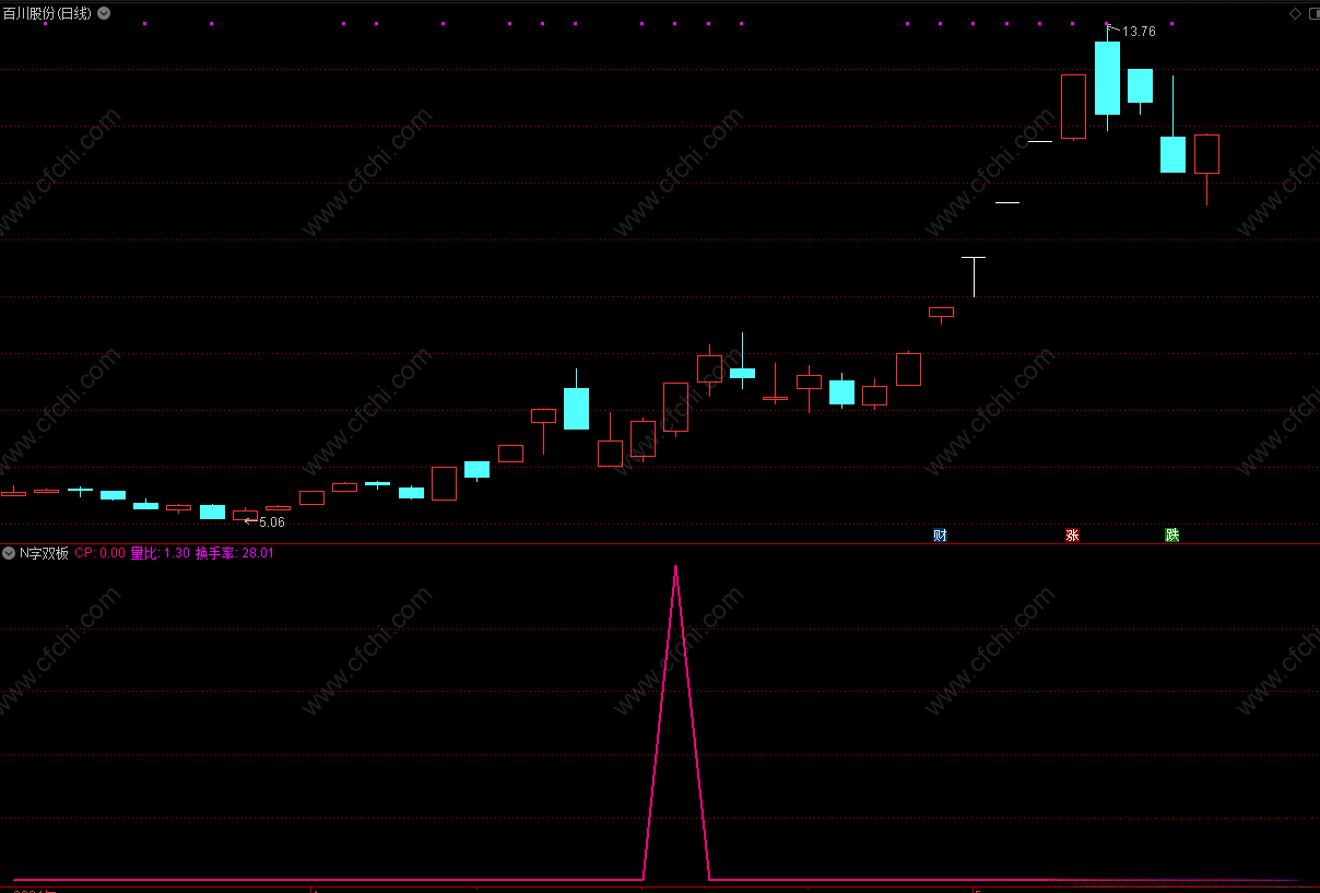 指标特点:10天内有涨停板,板后冲高回落3-10天内再次涨停就是出手时机,时机就是常说的N字形走势,把握的核心就在这震荡调整的10天内如何捕捉到标的,并能安全自如的上车是需要做功课的,本人感受就是放量拉伸,缩量洗盘,企稳结构形成后再行上车,炒股这事不能急,四平八稳,步步为营!