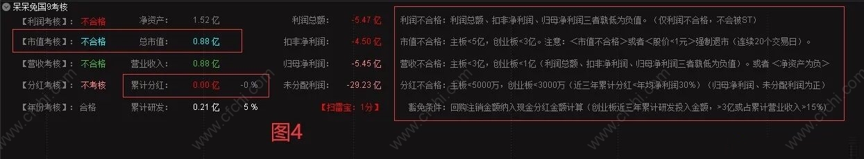 图4:市值不合格用蓝色对应,右边有国九条考核标准,一目了然。