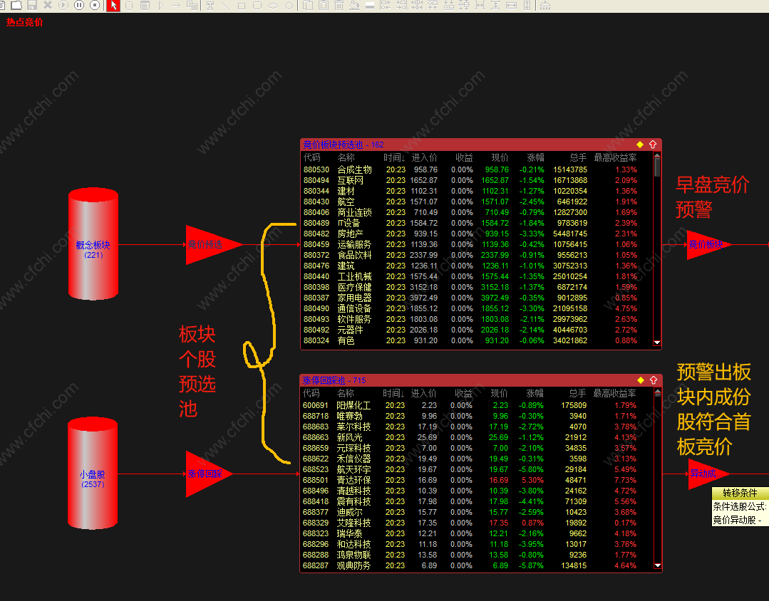 (情绪冰点-概念板块竞价-首板竞价(信号一年内固定)(竞价期的量柱曲线)-- 源码公开 )
