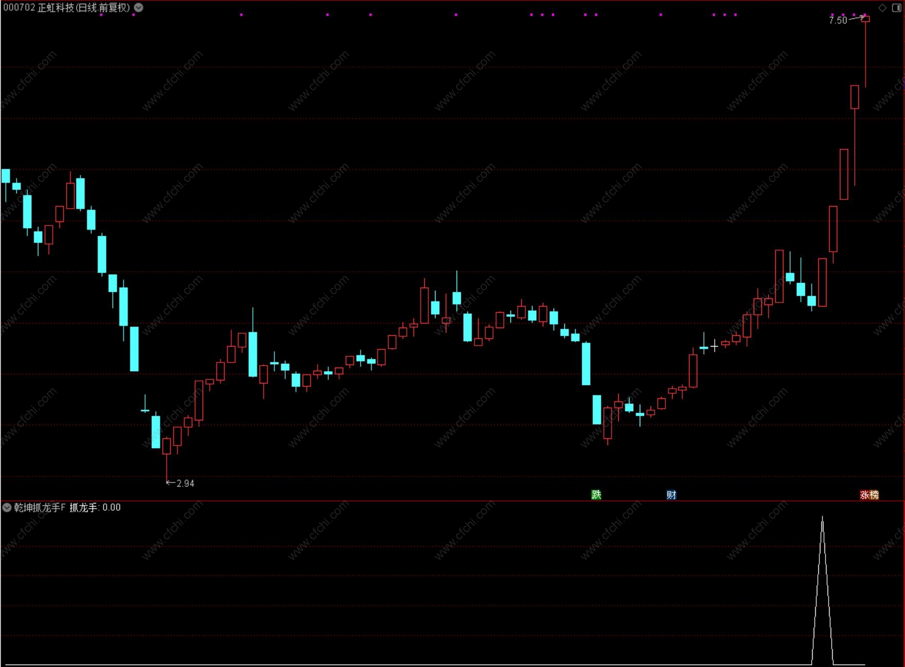 通达信【乾坤抓龙手】副图选股公式,专注抓牛股,抓龙出手,牛股在握,横空出世,源码指标分享