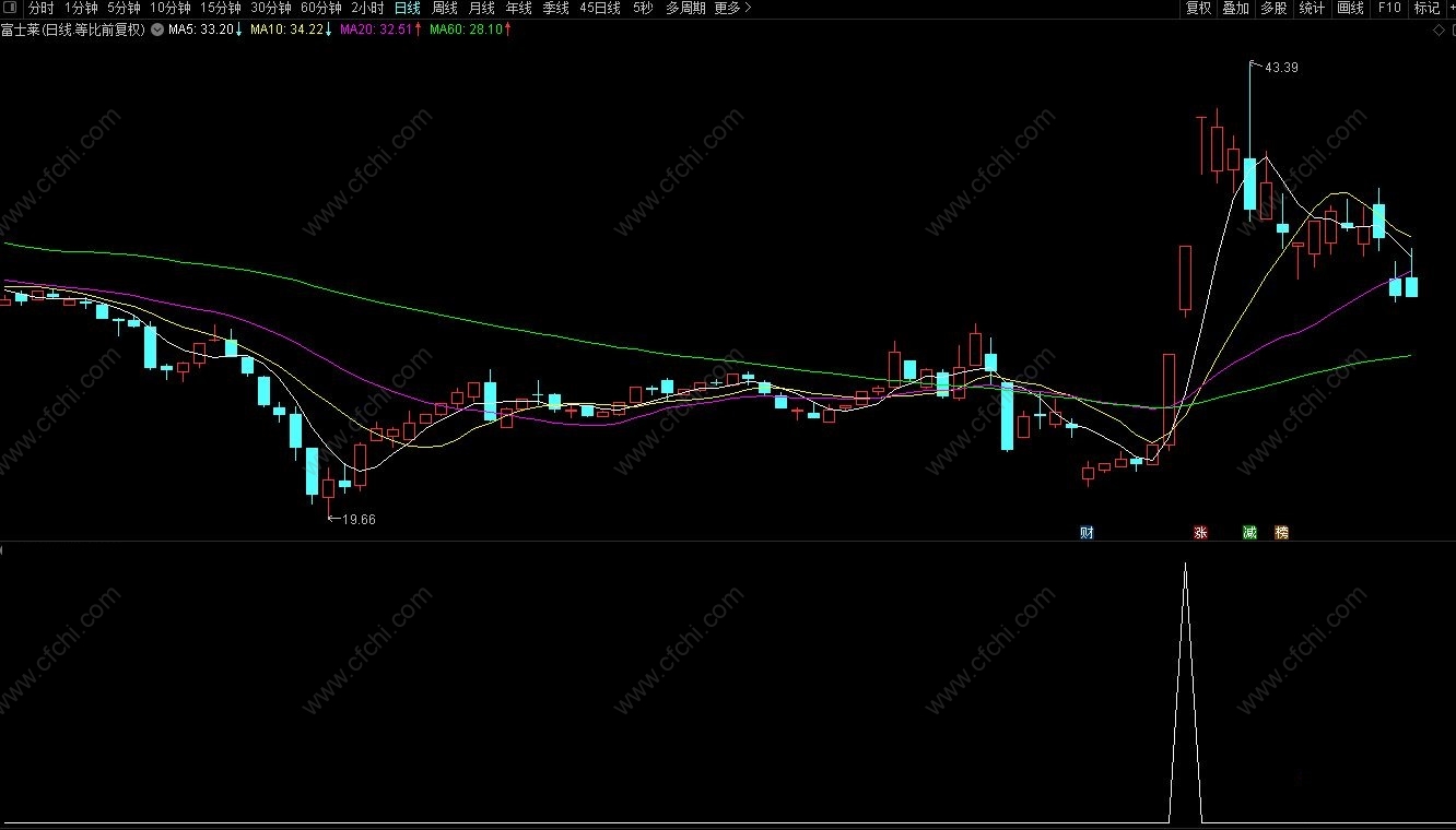 财富池指标公式网(www.cfchi.com)提醒您:指标公式是通过数学逻辑角度编写而来,仅是股票分析环节中的一个辅助工具,对股票选股效率和分析便捷上起到一定的作用,股市是具有不确定性和不可预测性的,请正常对待和使用指标公式!