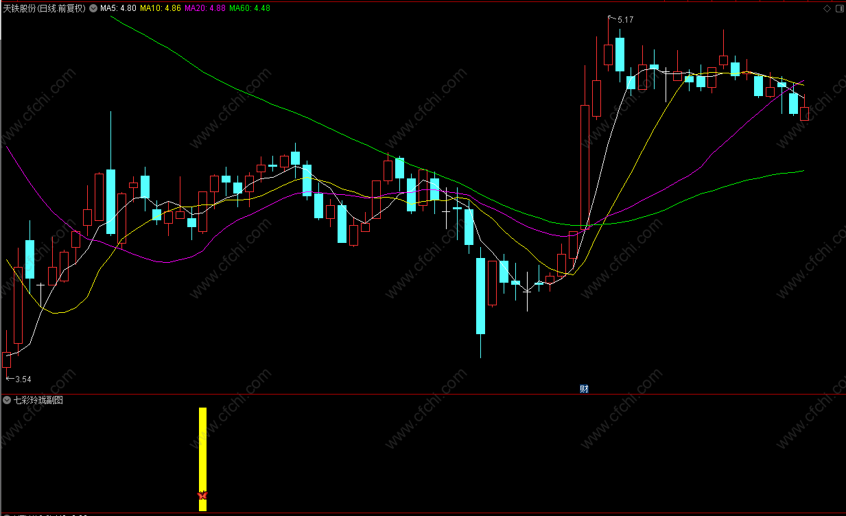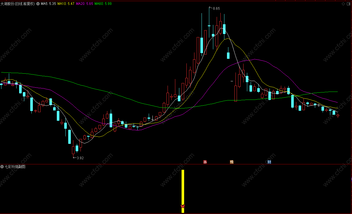财富池指标公式网(www.cfchi.com)提醒您:指标公式是通过数学逻辑角度编写而来,仅是股票分析环节中的一个辅助工具,对股票选股效率和分析便捷上起到一定的作用,股市是具有不确定性和不可预测性的,请正常对待和使用指标公式!